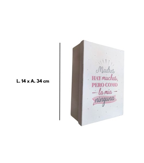 - El mensaje "Madres hay muchas, pero como la mía ninguna" está impreso en la caja, añadiendo un toque personal y emotivo.
