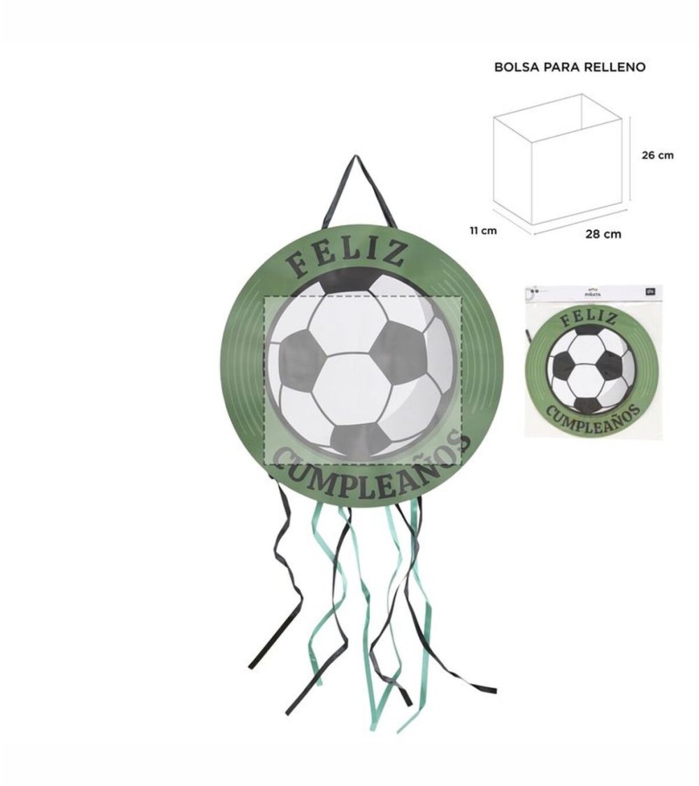 Esta Piñata Plegable de Fútbol para Fiesta Infantil es perfecta para celebrar un cumpleaños inolvidable. Con un diseño circular de pelota y un borde verde, lleva la leyenda Feliz cumpleaños. Sus medidas son 49 x 14 x 40 cm, y cuenta con una bolsa interior para regalos de 28 x 11 x 26 cm. Ideal para llenar de sorpresas y diversión la fiesta de tus pequeños.