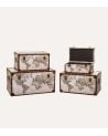 - Cierres: Herrajes metálicos estilo latón antiguo para seguridad