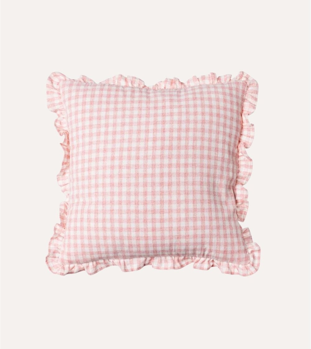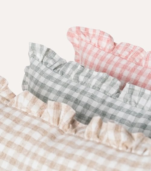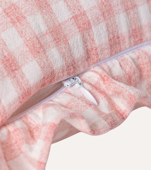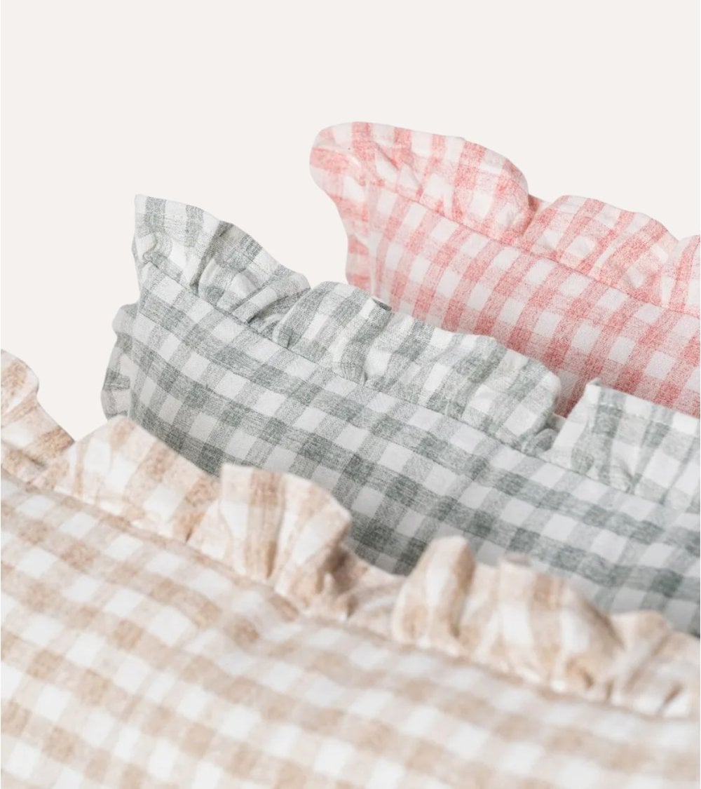 Cojín Vichy Cuadros con Fleco de Poliéster y Algodón