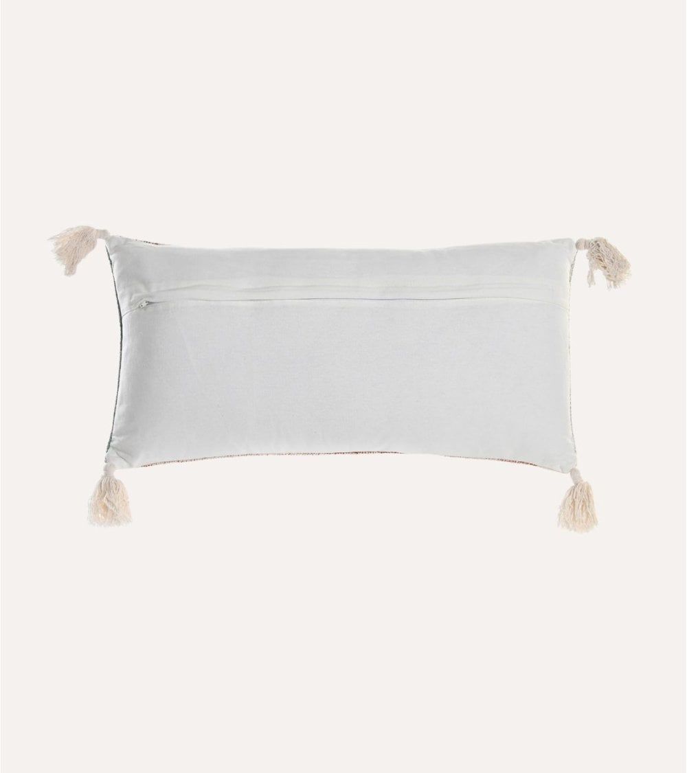 Confeccionado en una cuidada mezcla de algodón y poliéster, este cojín decorativo ofrece una textura suave y resistente, perfecta para el uso diario en sofás, sillones, butacas o camas. Su paleta de colores combina tonos aqua, beige y matices terracota, logrando un efecto vintage que encaja a la perfección en ambientes boho, clásicos, rústicos o eclécticos.