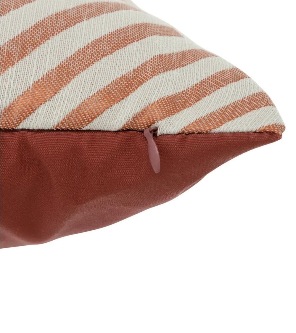 Este cojín geométrico para exteriores, con medidas de 40 x 6 x 40 cm, es perfecto para uso interior o exterior. Su diseño de patrón de líneas en blanco y terracota aporta un toque moderno y elegante a cualquier espacio. Además, cuenta con un tratamiento repelente al agua y es resistente a los rayos UV, lo que lo hace fácil de mantener y duradero.