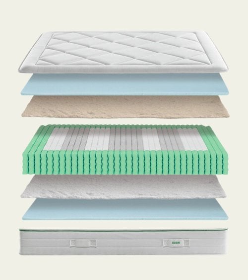 - Material: Su tejido de viscosa, una fibra natural altamente absorbente, mantiene el colchón fresco y transpirable todo el año.