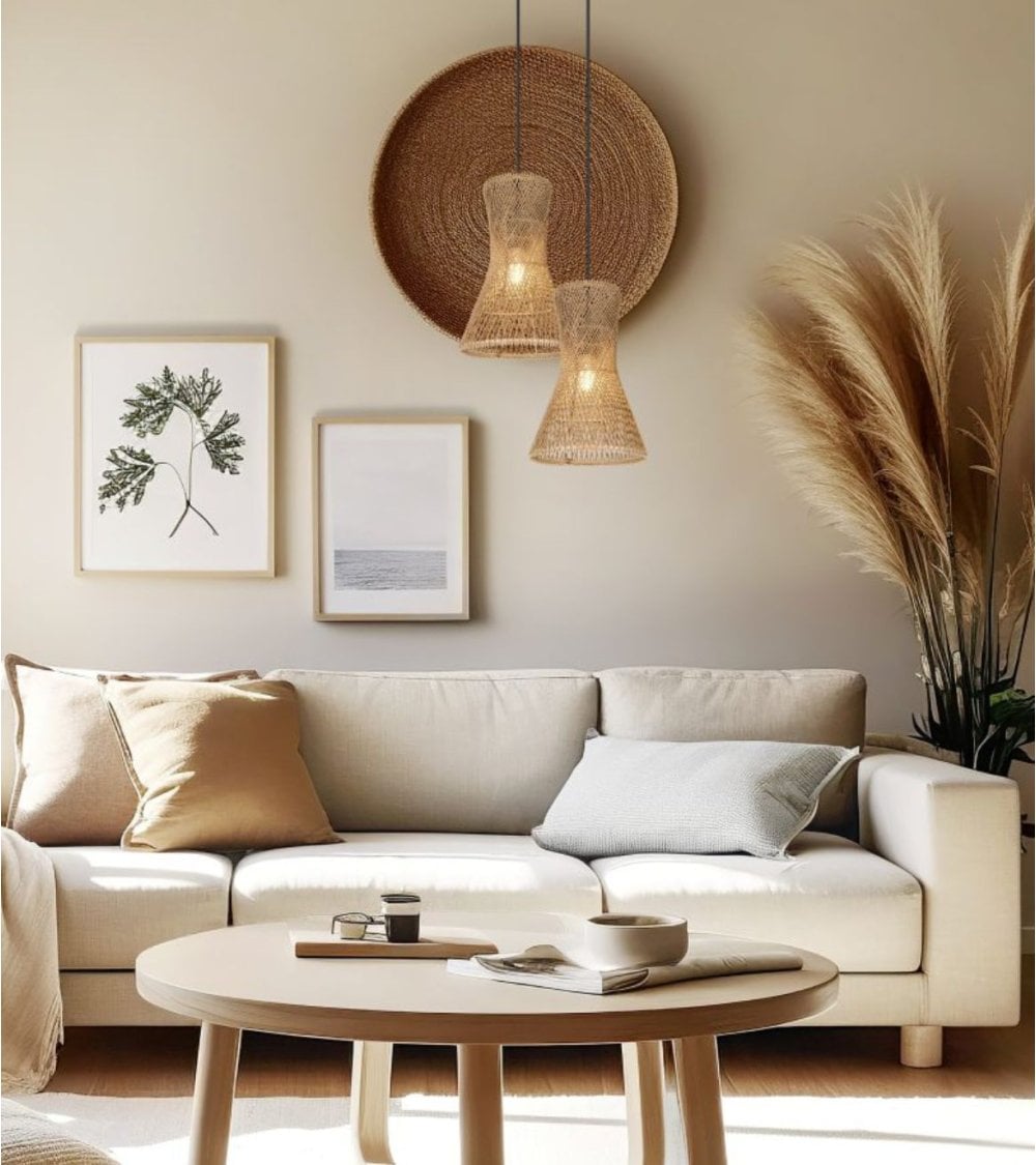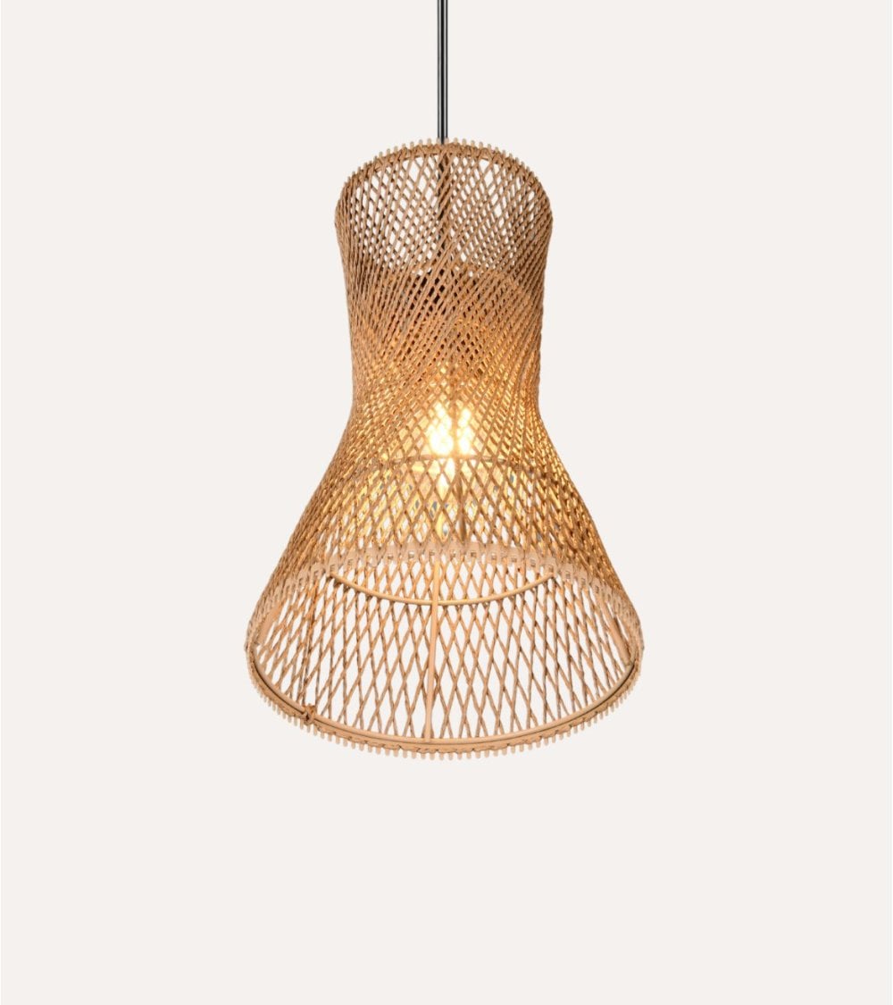 Esta lámpara destaca por su estructura elaborada en metal resistente y un acabado en papel cuidadosamente trabajado, que permite una difusión de luz delicada y acogedora. Su diseño único no solo ilumina, sino que también decora, creando ambientes agradables tanto en salones como en comedores o zonas de descanso.