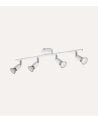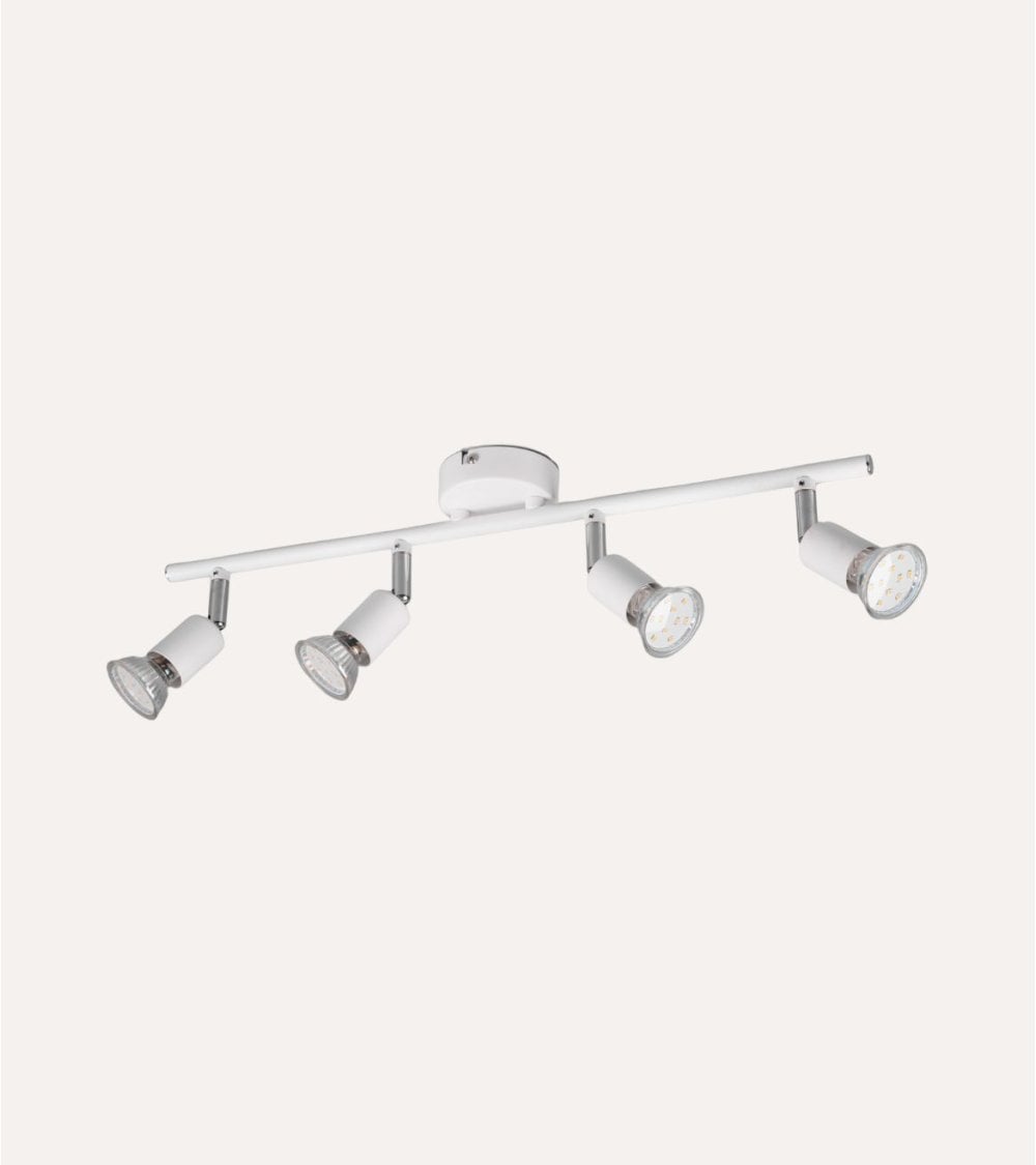 La lámpara cuenta con cuatro focos compatibles con bombillas GU10, cada uno consumiendo aproximadamente 8.75 vatios para un total de 35 W, lo que garantiza una iluminación potente pero eficiente energéticamente. Además, los focos son ajustables, permitiéndote dirigir la luz hacia donde más la necesites, ya sea para iluminar áreas específicas o crear ambientes acogedores.