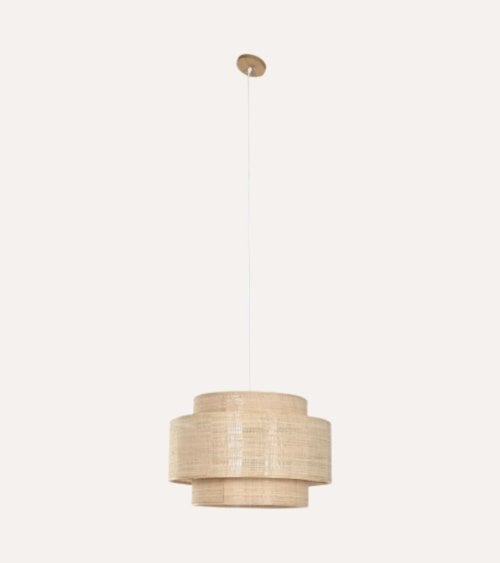 Añada un elemento decorativo que no solo ilumina sino que también realza el carácter de su hogar con esta lámpara colgante versátil y estilizada. Su combinación de materiales naturales y detalles metálicos garantiza resistencia mientras mantiene un aspecto ligero y elegante.