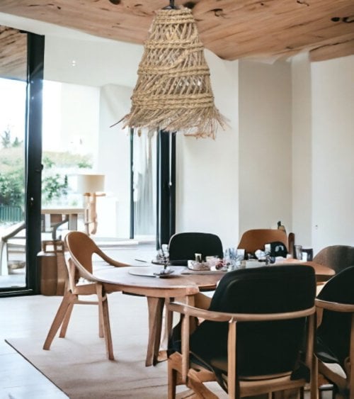 - Hecha a mano: Cada lámpara es única gracias a su proceso de tejido a mano.