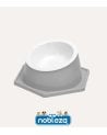 El material plástico utilizado en la base asegura durabilidad y resistencia al desgaste, mientras que el interior del tazón tiene un acabado blanco brillante, fácil de limpiar y mantener. Este contraste no solo es estéticamente agradable, sino que también promueve la higiene al evitar que los restos de comida se adhieran.
