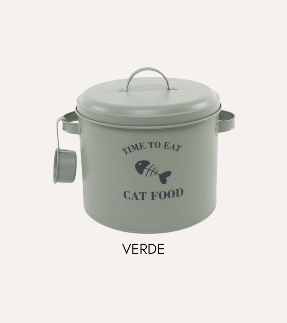 Bote para Comida de Gato de Metal con Cazo
