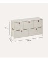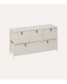 La Cómoda Baja Tissa cuenta con cinco amplios cajones que facilitan la organización de ropa, accesorios o artículos del hogar. Cada cajón está equipado con tiradores ergonómicos que permiten un manejo cómodo y seguro. Además, su acabado en tonos neutros hace que sea fácil combinarla con diferentes estilos decorativos.
