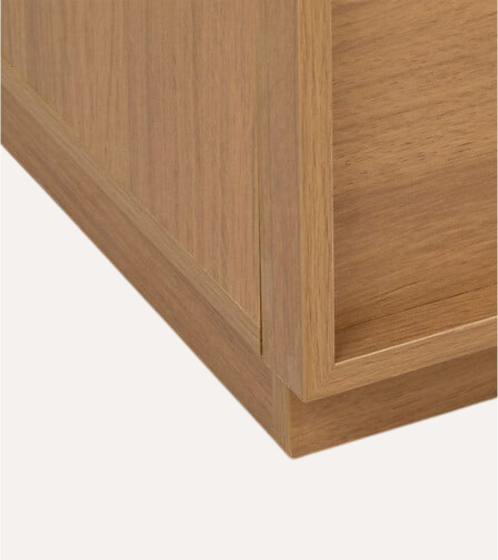 Gracias a su base ligeramente elevada, esta cómoda no solo mejora la estabilidad sino que también genera una sensación de ligereza visual dentro del ambiente. Su tamaño compacto es perfecto para usarla como mesita de noche o como complemento en salas y dormitorios.