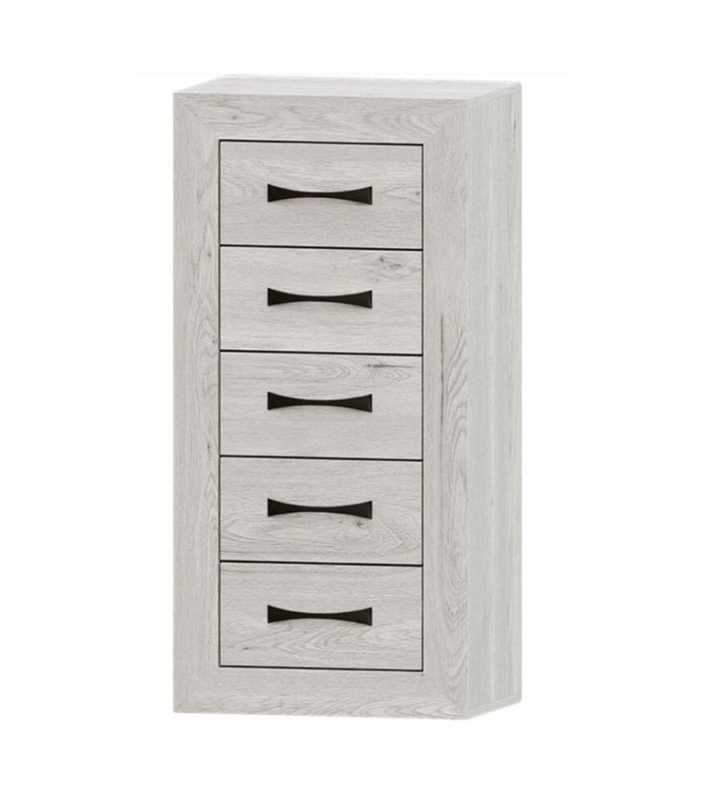 Sinfonier de cinco cajones de la colección Niza con estructura resistente de melamina densa. Disponible en varios colores.