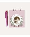 Acompañando a la libreta, encontramos un bolígrafo vibrante en color púrpura que complementa perfectamente el conjunto. Su diseño elegante y mecanismo de clic lo hacen fácil de usar, ideal para anotar reflexiones o mensajes especiales durante las celebraciones.