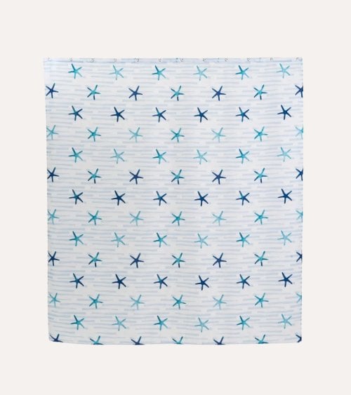 - Diseño: Estrellas de mar en tonos turquesa y azul marino sobre fondo blanco