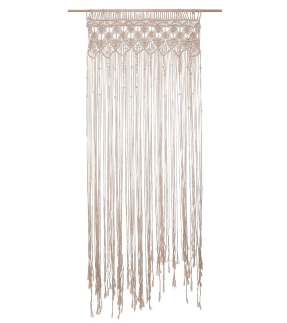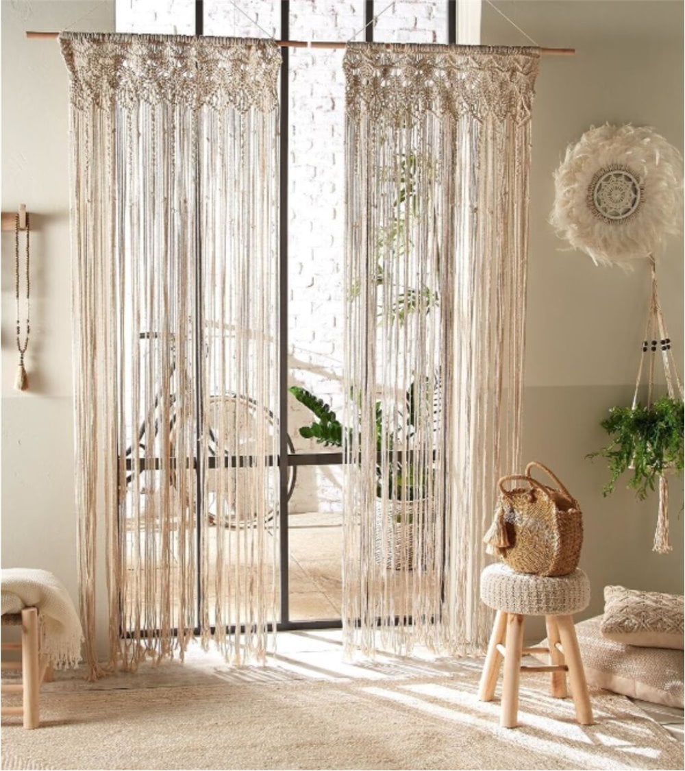 Cortina de macramé color marfil, ideal para cualquier estancia.