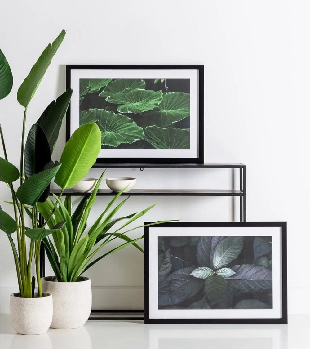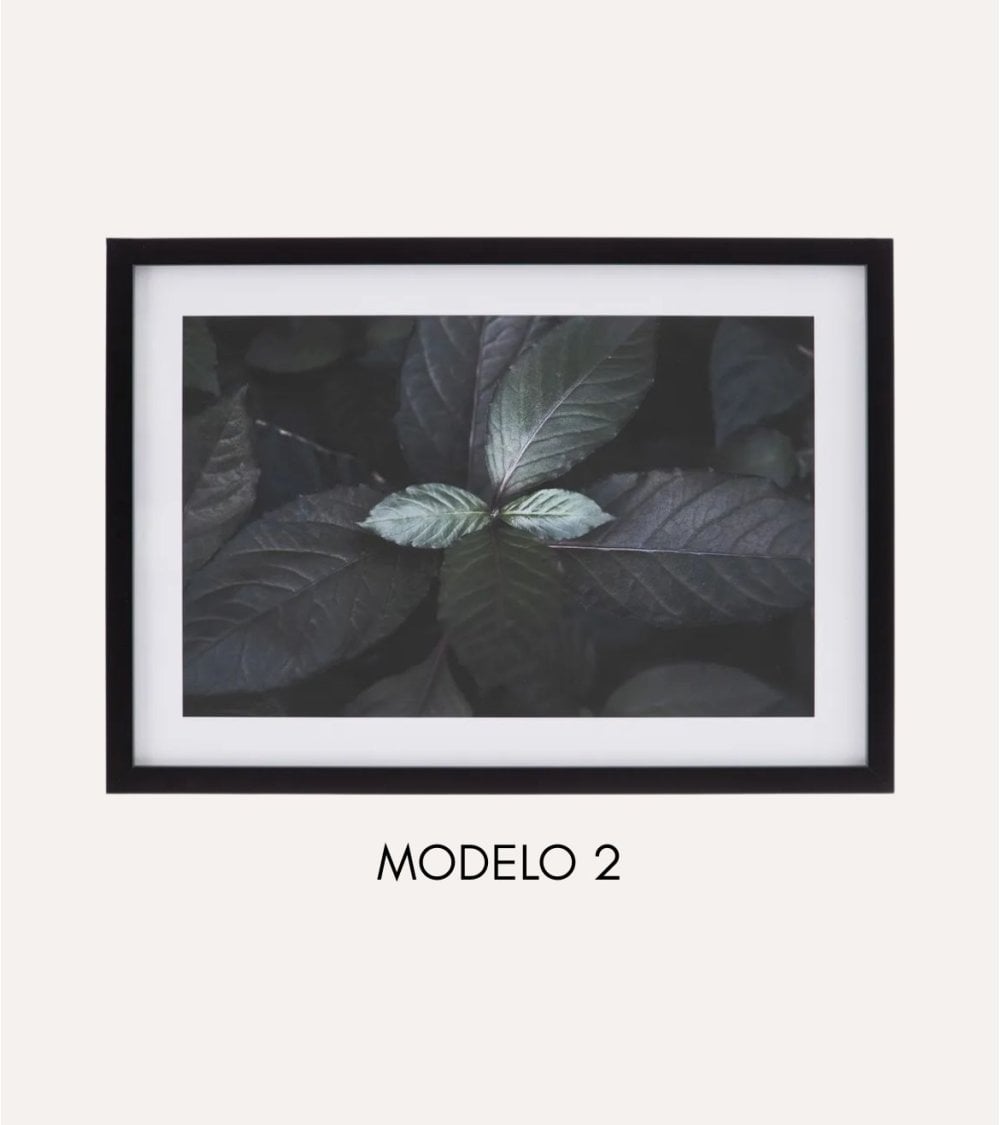 El cuadro cuenta con una impresión fotográfica de alta calidad que resalta los detalles intrincados de las hojas, desde sus venas hasta las texturas naturales, ofreciendo una experiencia visual única. La combinación del marco negro mate con el paspartú blanco crea un contraste que realza la imagen y aporta sofisticación al conjunto.