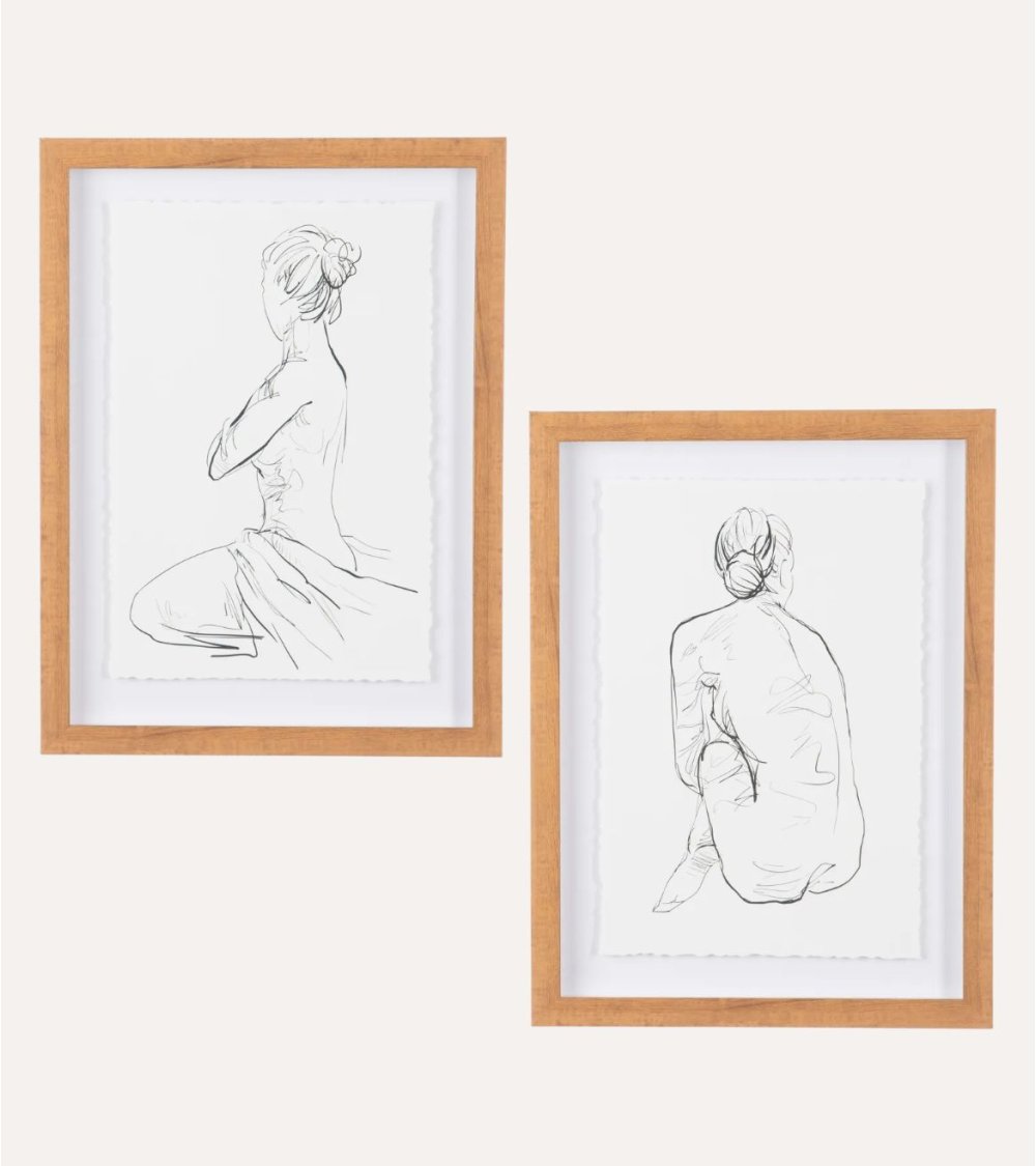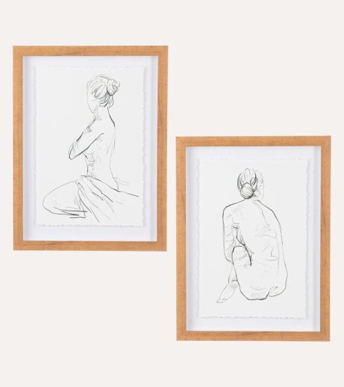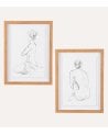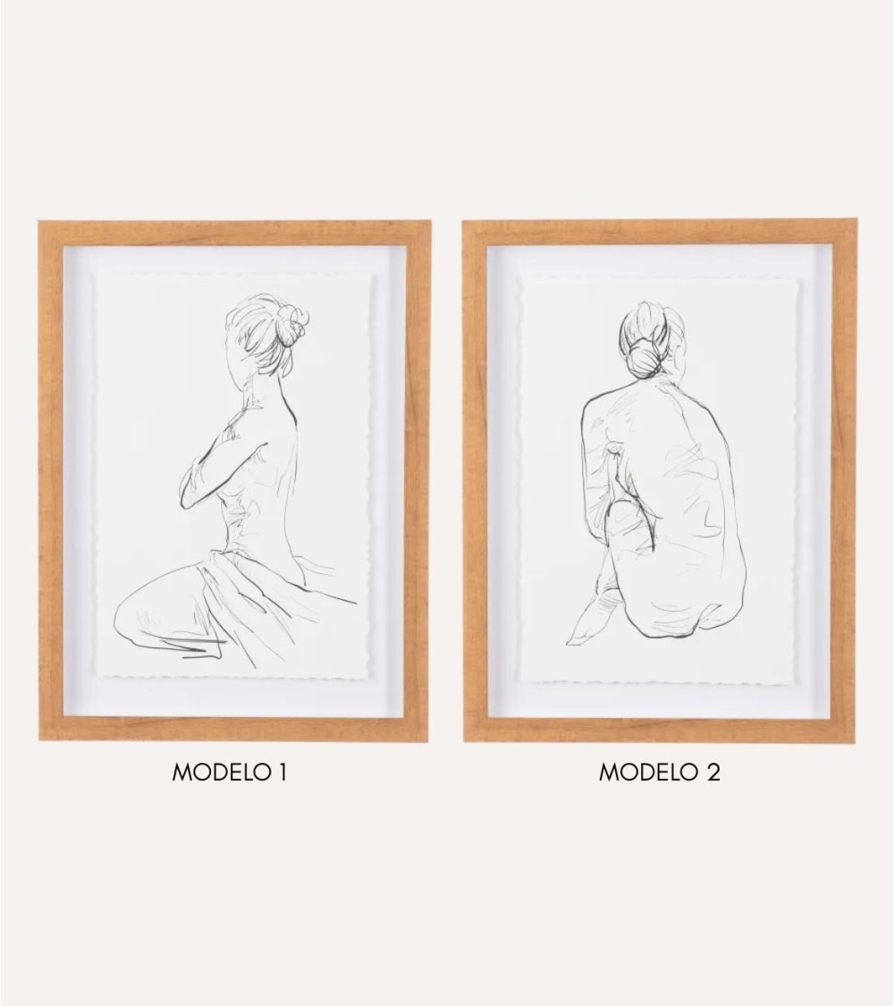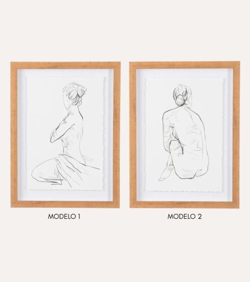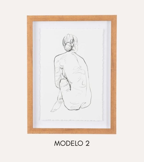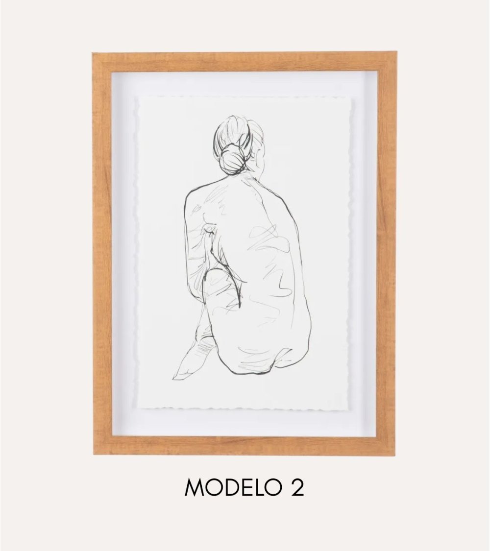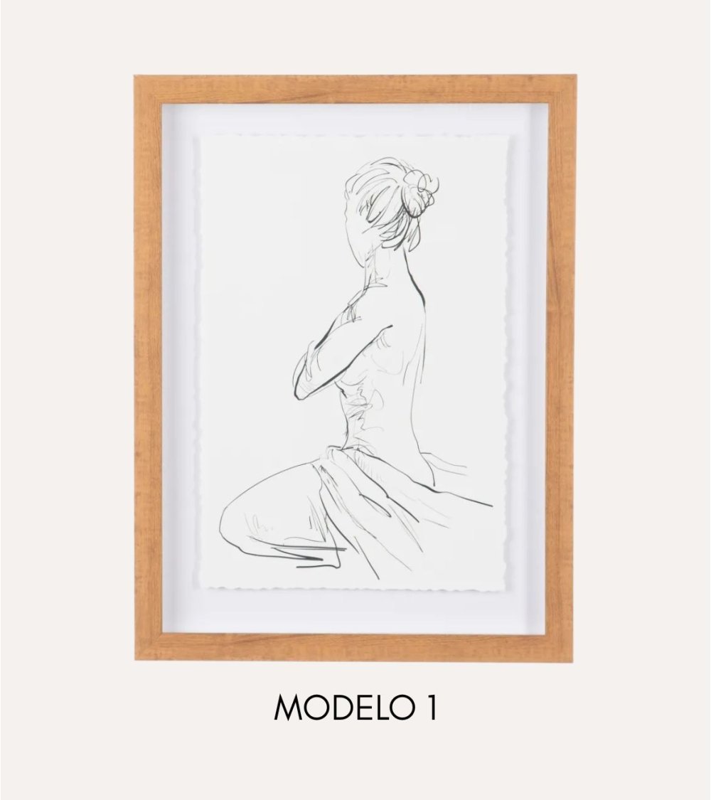 El arte representa una figura femenina trazada con líneas finas y fluidas que capturan la esencia y belleza natural del cuerpo humano. La simplicidad del dibujo permite que el cuadro se integre fácilmente en diferentes estilos decorativos, desde ambientes modernos hasta espacios más clásicos, aportando serenidad y armonía visual.