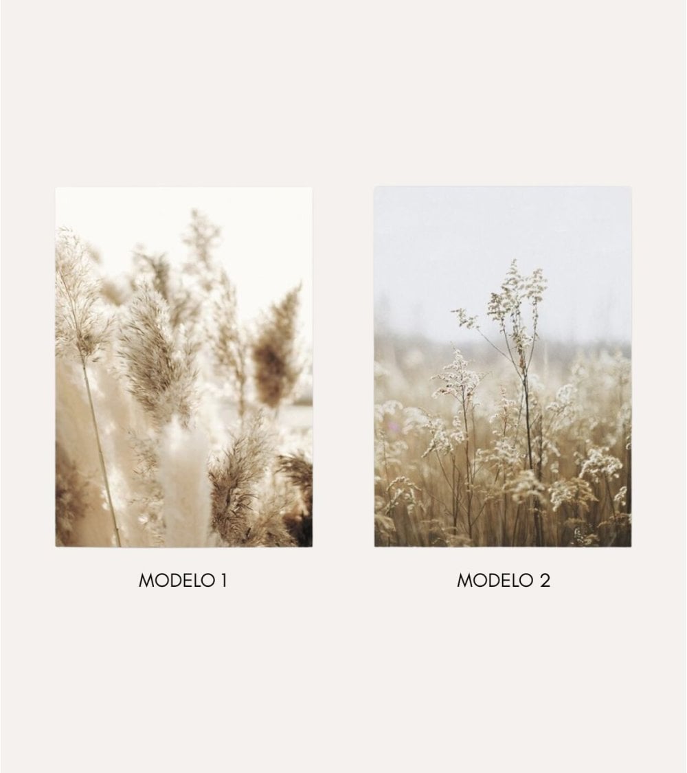 Ambos modelos están impresos sobre lienzo de alta calidad, garantizando durabilidad y resistencia al paso del tiempo. Su paleta cromática neutra facilita su integración en diversos estilos decorativos, desde modernos hasta rústicos o escandinavos.