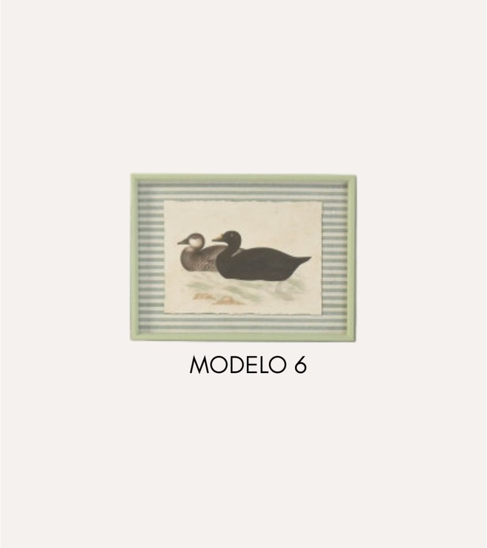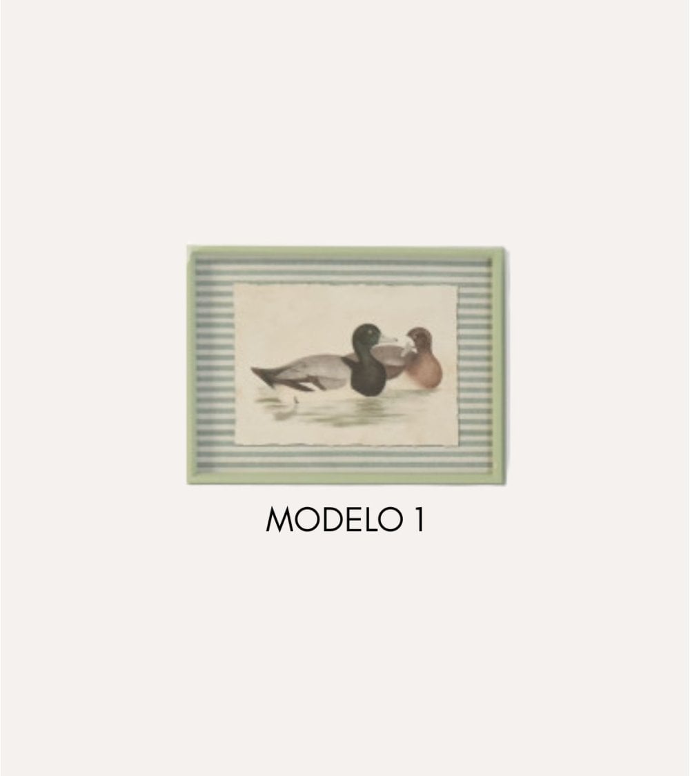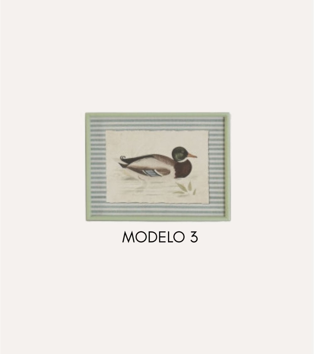 - Diseño: Representación realista del pato en su hábitat natural con tonos suaves y terrosos.