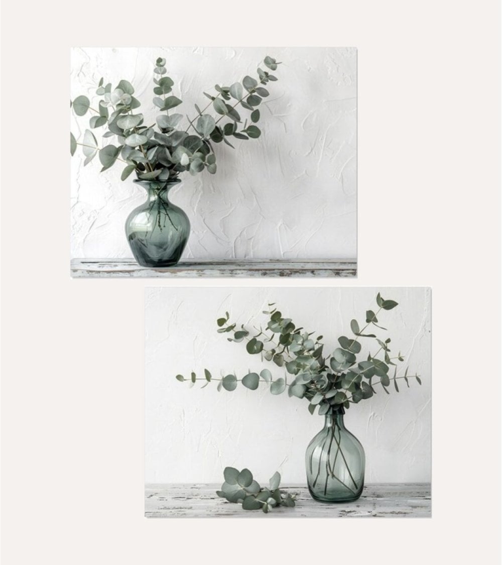 No solo estarás adquiriendo un cuadro decorativo sino también una pieza que aporta bienestar visual gracias a la representación del eucalipto, conocido por sus propiedades relajantes y purificadoras del ambiente.