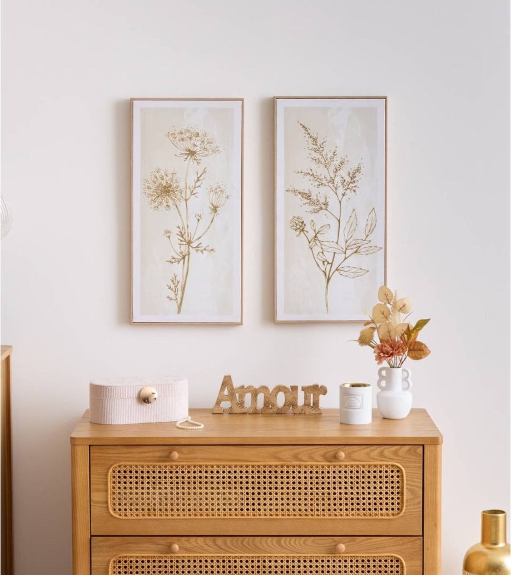 En ALI Hogar, ofrecemos el Cuadro Lienzo Flor Silvestre Beryl de MDF, una pieza decorativa que aporta elegancia y un toque natural a cualquier espacio. Ideal para hogares y oficinas, su diseño botánico inspirado en flores silvestres brinda frescura y armonía visual. Fabricado con MDF de alta calidad, garantiza durabilidad y resistencia. Su impresión sobre lienzo proporciona una textura suave y un acabado mate que realza los detalles del diseño floral. El marco sencillo pero elegante enmarca perfectamente la obra, facilitando su integración en diferentes estilos decorativos. Perfecto para salas de estar, dormitorios, pasillos o oficinas, su paleta de colores neutros y terrosos se combina fácilmente con otros elementos decorativos. Tamaño: 30 x 60 x 2.5 cm. Material: MDF resistente. Diseño: Ilustración botánica con flores silvestres. Acabado: Lienzo mate. Borde: Marco estrecho y elegante.