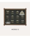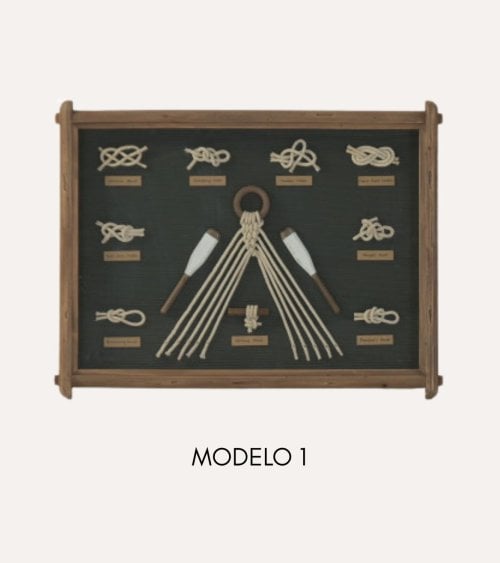 Su diseño destaca por la disposición de nudos marineros y motivos náuticos cuidadosamente organizados sobre un fondo oscuro que resalta cada detalle. Disponible en los colores Verde y Azul, este cuadro se adapta tanto a ambientes costeros luminosos como a interiores más sobrios y contemporáneos.