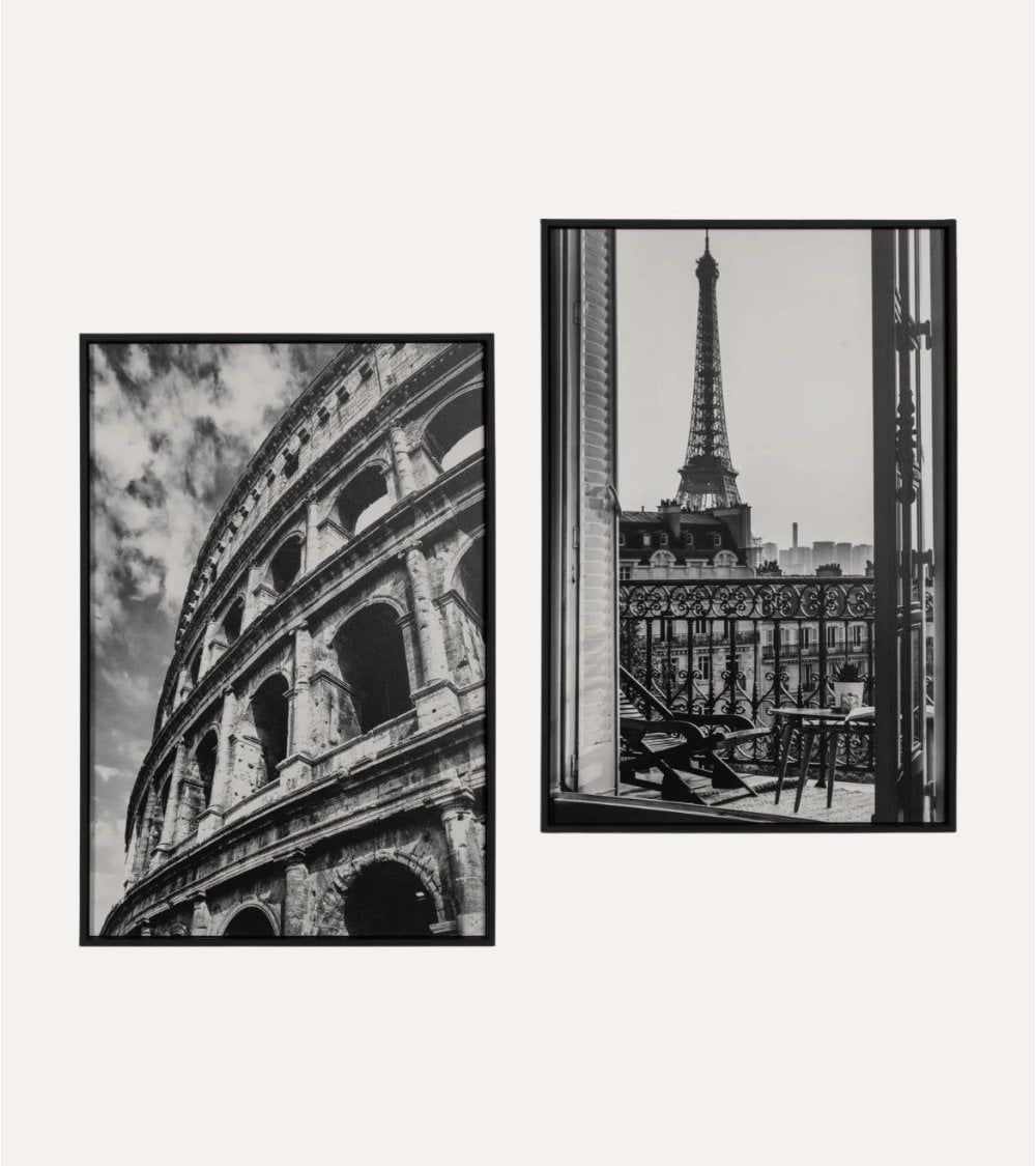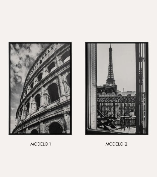 Este cuadro de ciudad en blanco y negro, impreso en lámina de DM, aporta un toque sofisticado a cualquier espacio. Con un marco de material DM, este cuadro es duradero y de alta calidad. Incluye un sistema de sujeción para una colocación correcta y fácil. Sus medidas son 40 x 3 x 60 cm, perfectas para destacar en cualquier pared.