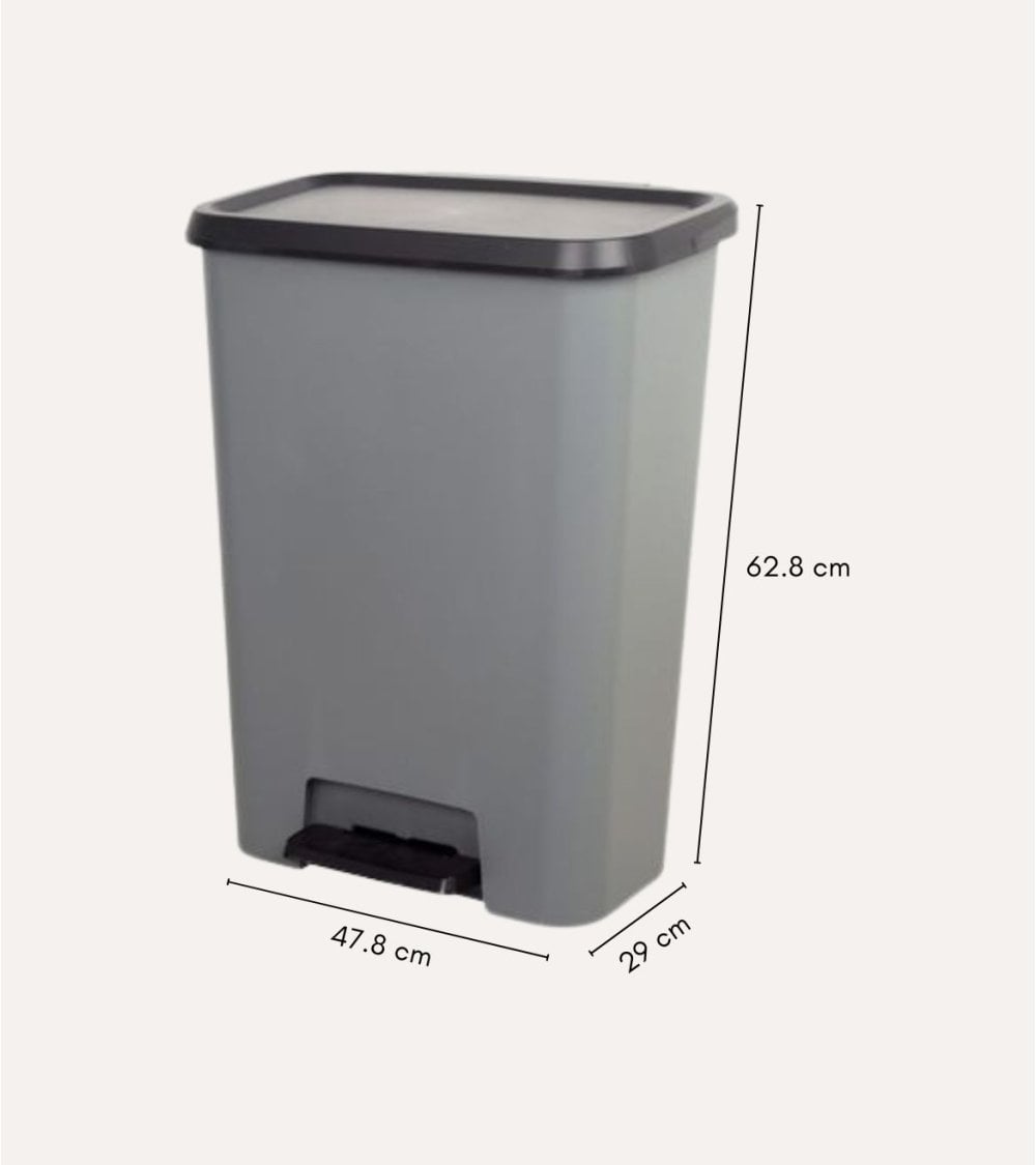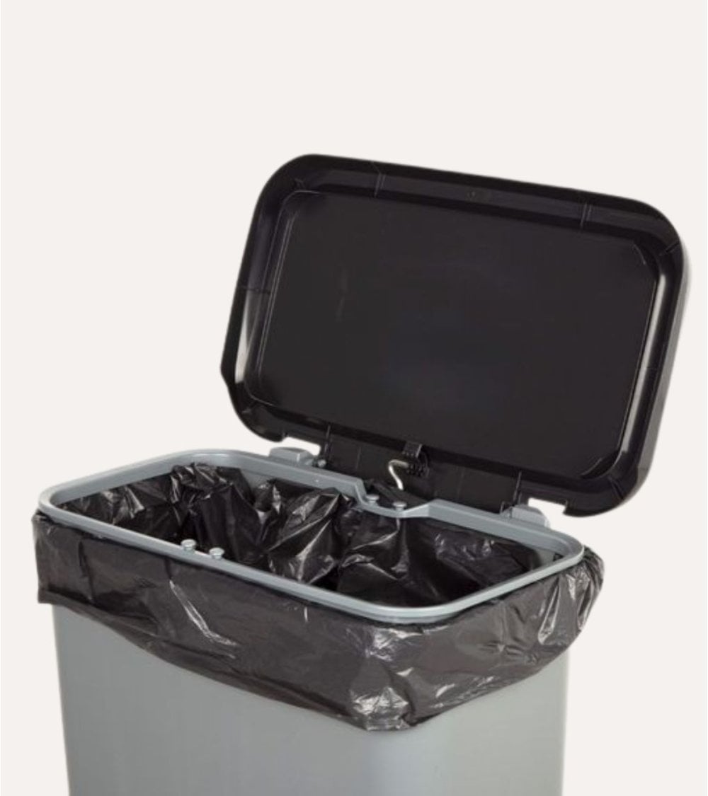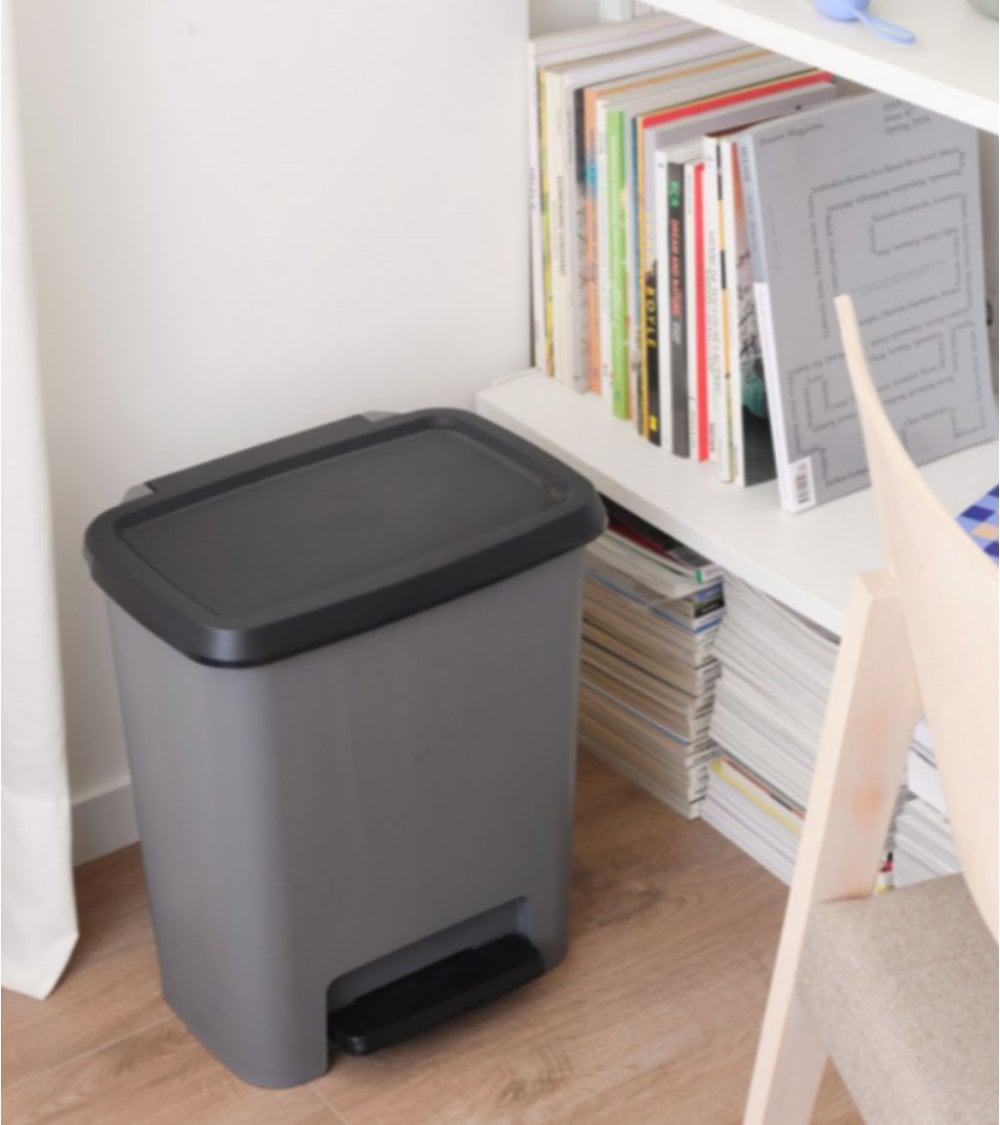 - Pedal Práctico: El pedal negro permite abrir el cubo sin usar las manos, lo que mejora la higiene al desechar residuos.