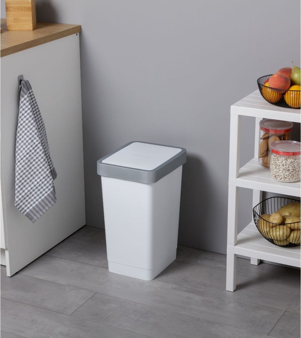 Descubre el Cubo de Tapa Basculante Smart de Plástico, la solución perfecta para la gestión de residuos en tu hogar u oficina. Este cubo, fabricado por Tatay, combina funcionalidad y estilo, siendo esencial para mantener tus espacios limpios y organizados. Su diseño rectangular y base cónica ofrecen estabilidad y maximizan su capacidad interior. Disponible en blanco y negro, su color predominante blanco con borde gris le da un aspecto moderno que se adapta a cualquier decoración. Fabricado en polipropileno duradero, resistente al desgaste diario, con dimensiones de 26 x 34 x 47 cm.
