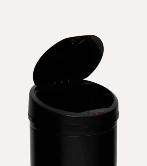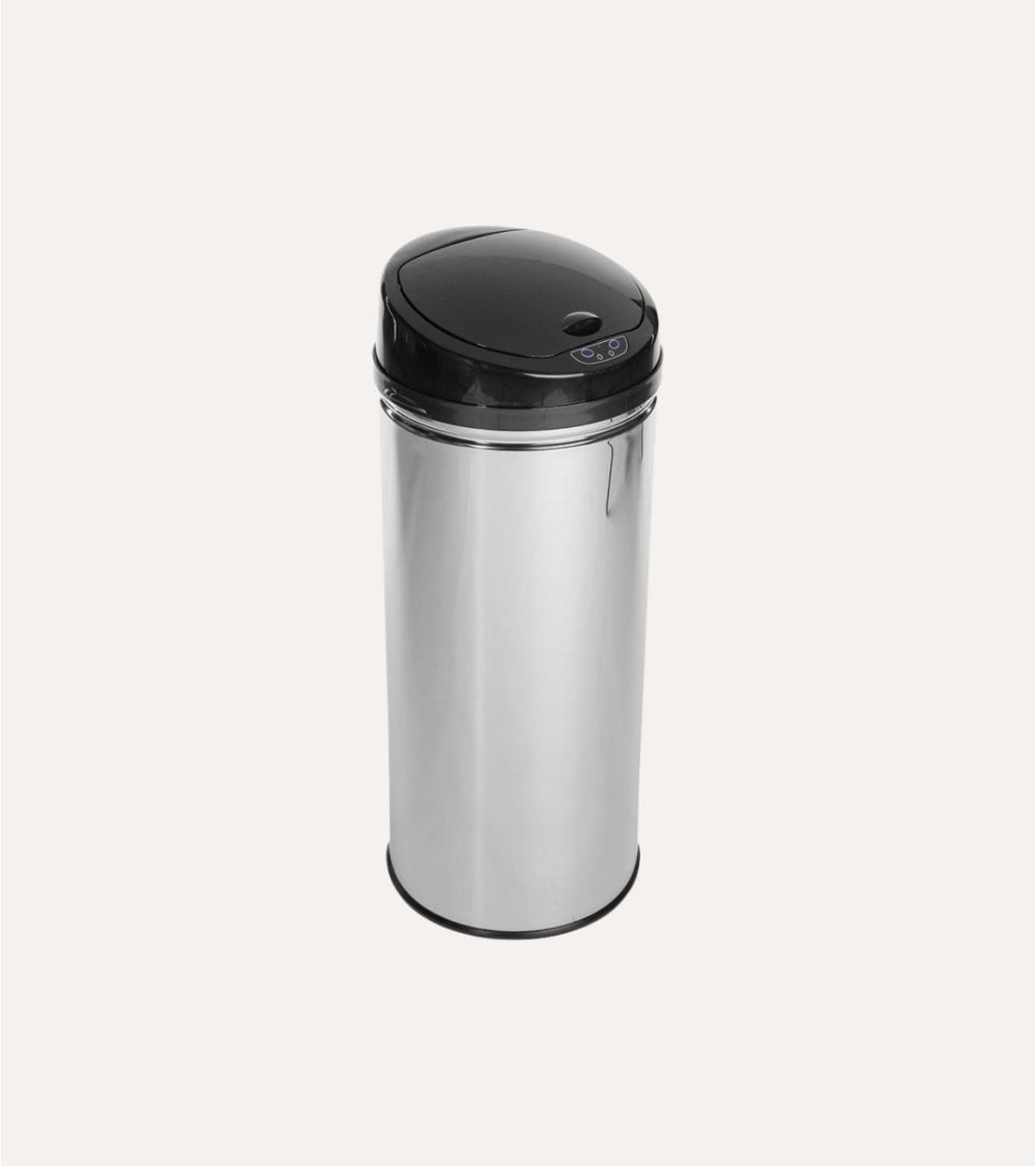 Fabricado con materiales de alta calidad como acero inoxidable y ABS, este cubo ofrece una resistencia excepcional a la corrosión, manchas y desgaste diario. Su diseño cilíndrico y estilizado se adapta perfectamente a ambientes contemporáneos, mientras que su tapa negra con sensor automático garantiza una experiencia sin contacto, promoviendo la higiene al evitar el contacto directo con las manos.