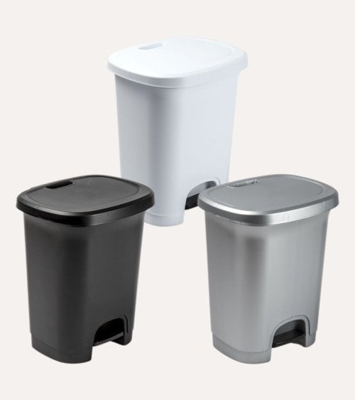 Este cubo de basura destaca por su diseño moderno y práctico, disponible en varias capacidades y colores para adaptarse a tus necesidades específicas. Puedes elegir entre 8 litros, 18 litros o 50 litros, lo que lo hace perfecto tanto para espacios pequeños como grandes. Además, está disponible en una variedad de colores neutros y elegantes: Negro, Blanco, Plata y Marrón, facilitando su integración con cualquier decoración.