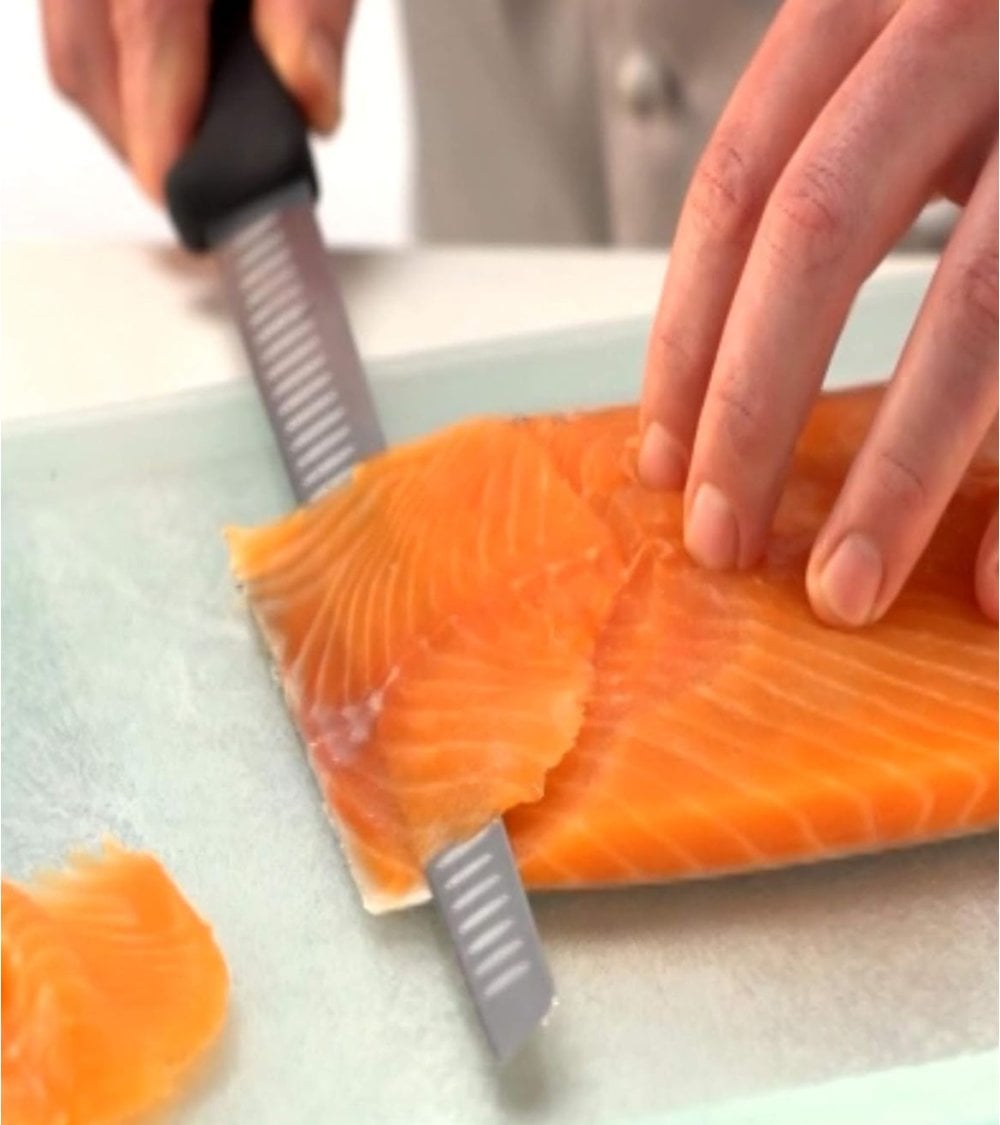 - Uso: Ideal para cortar salmón y pescado azul en trozos pequeños