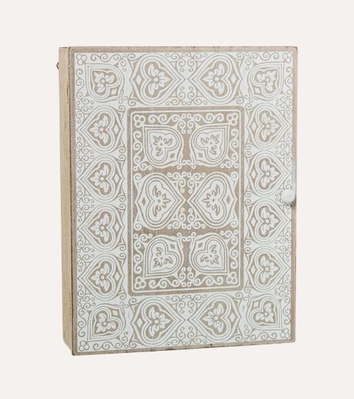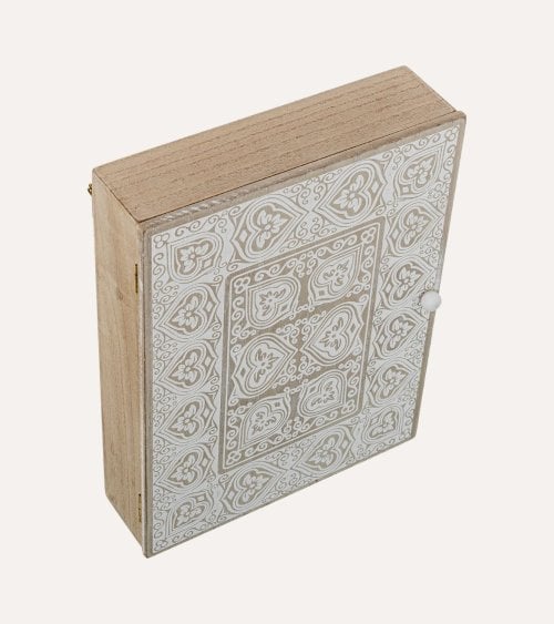 Cuelga Llaves de Madera con Diseño en Blanco