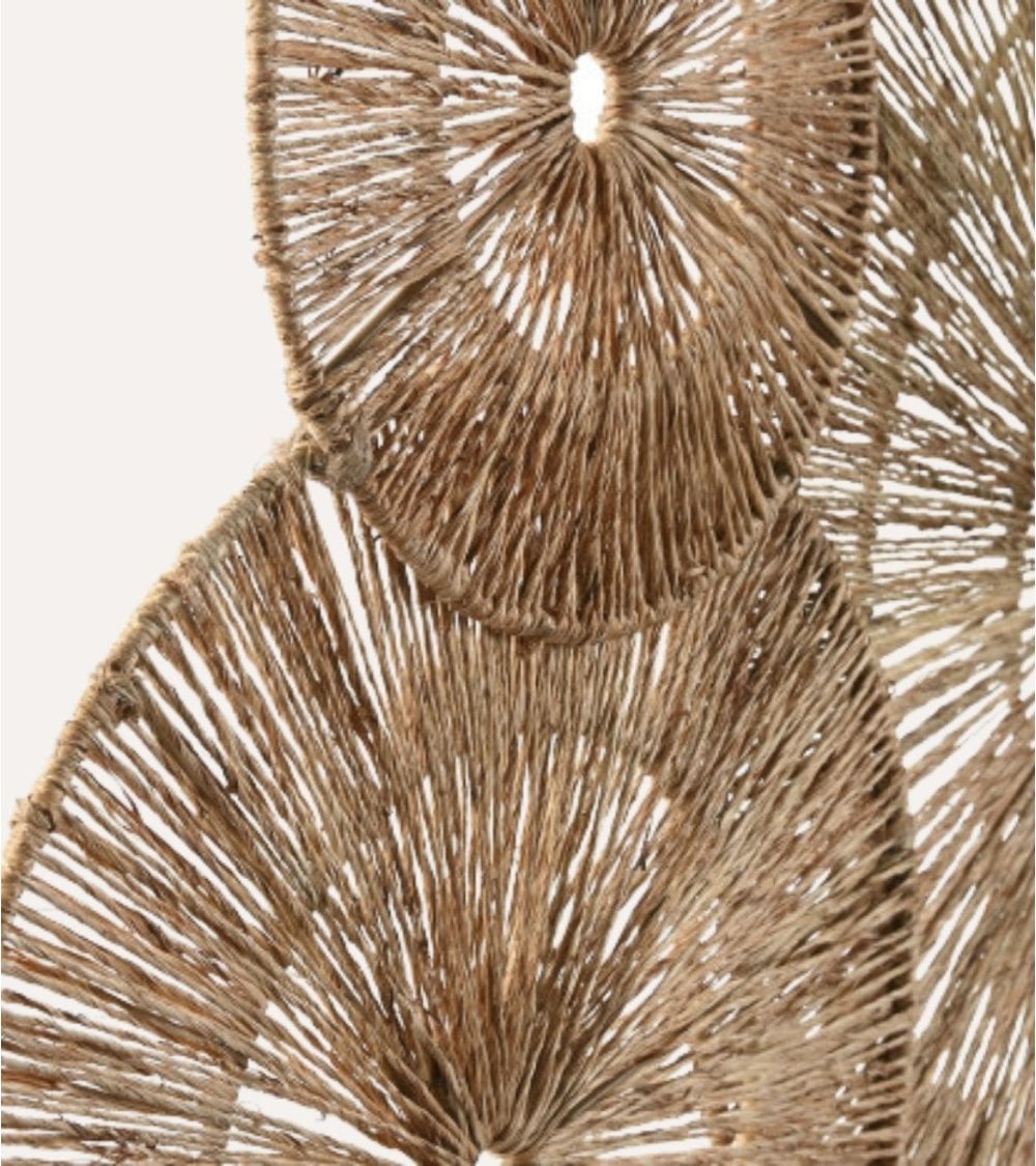 Transforma tu espacio con la Decoración de Pared Destellos de Yute y Metal, una pieza única que combina la belleza natural del yute con la elegancia del metal. Este impresionante arte mural no solo es un elemento decorativo, sino también un punto focal que atraerá todas las miradas en cualquier habitación.