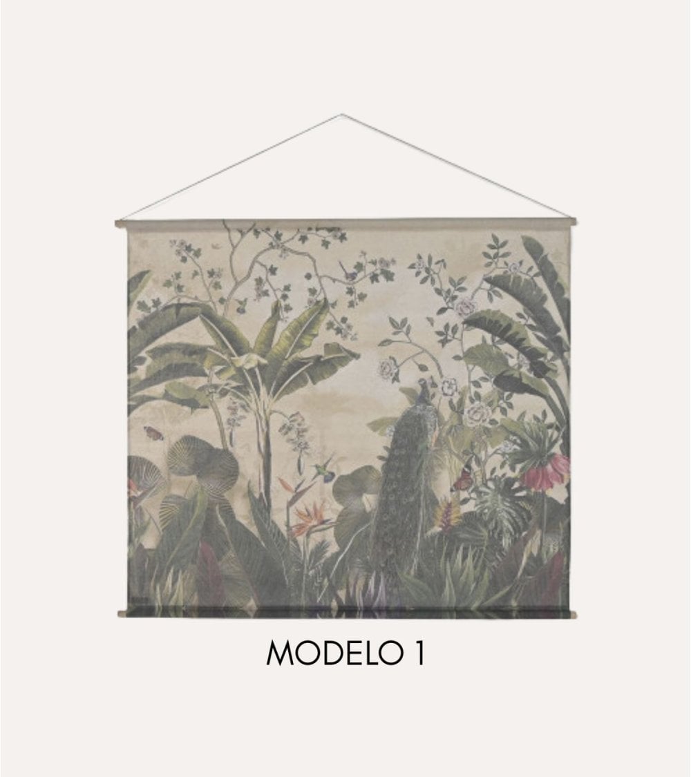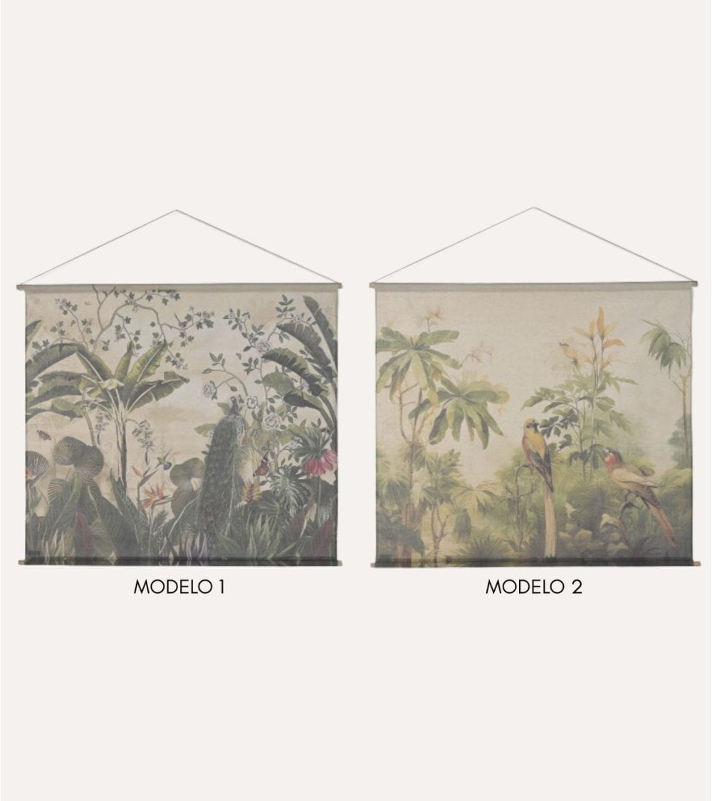 Perfecto para la categoría de decoración de pared, este tapiz es una opción versátil que se adapta tanto a ambientes modernos como rústicos o vintage. Su diseño inspirado en la selva tropical aporta frescura y vitalidad, mientras que los tonos naturales del lino y la madera generan una atmósfera acogedora y armoniosa.