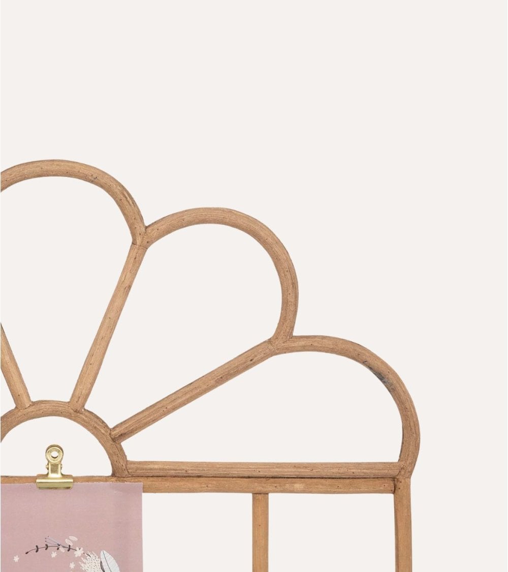 La Decoracion de Pared para Fotos de Ratán es el complemento perfecto para dar un toque cálido, natural y acogedor al dormitorio de los más pequeños. Fabricada en auténtico ratán, esta pieza de decoración de pared combina diseño artesanal y funcionalidad, permitiendo crear un encantador mural de recuerdos con fotos, postales o pequeños dibujos infantiles.