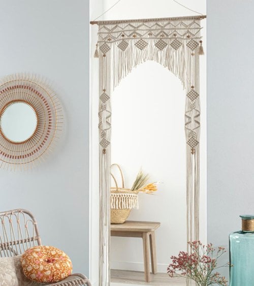 - Ajuste natural: La cuerda resistente en la parte superior permite una fácil instalación y añade un toque rústico.