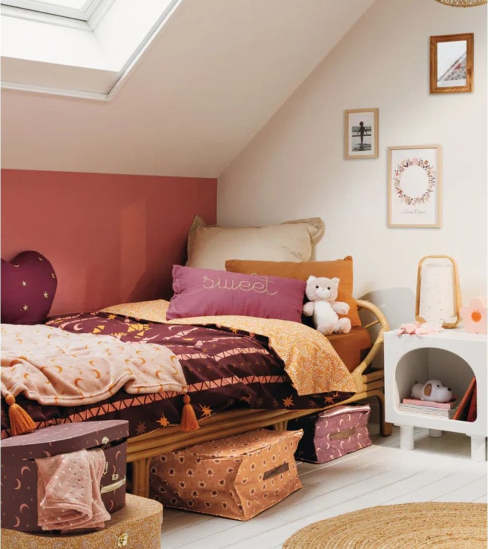 Además, el diseño rectangular del cojín es versátil, permitiendo su uso en camas, sofás o sillones dentro del cuarto infantil o cualquier rincón especial del hogar. Los botones decorativos en uno de sus laterales no solo realzan su estética sino que también facilitan la extracción de la funda para su limpieza, manteniendo siempre el cojín fresco e higiénico.