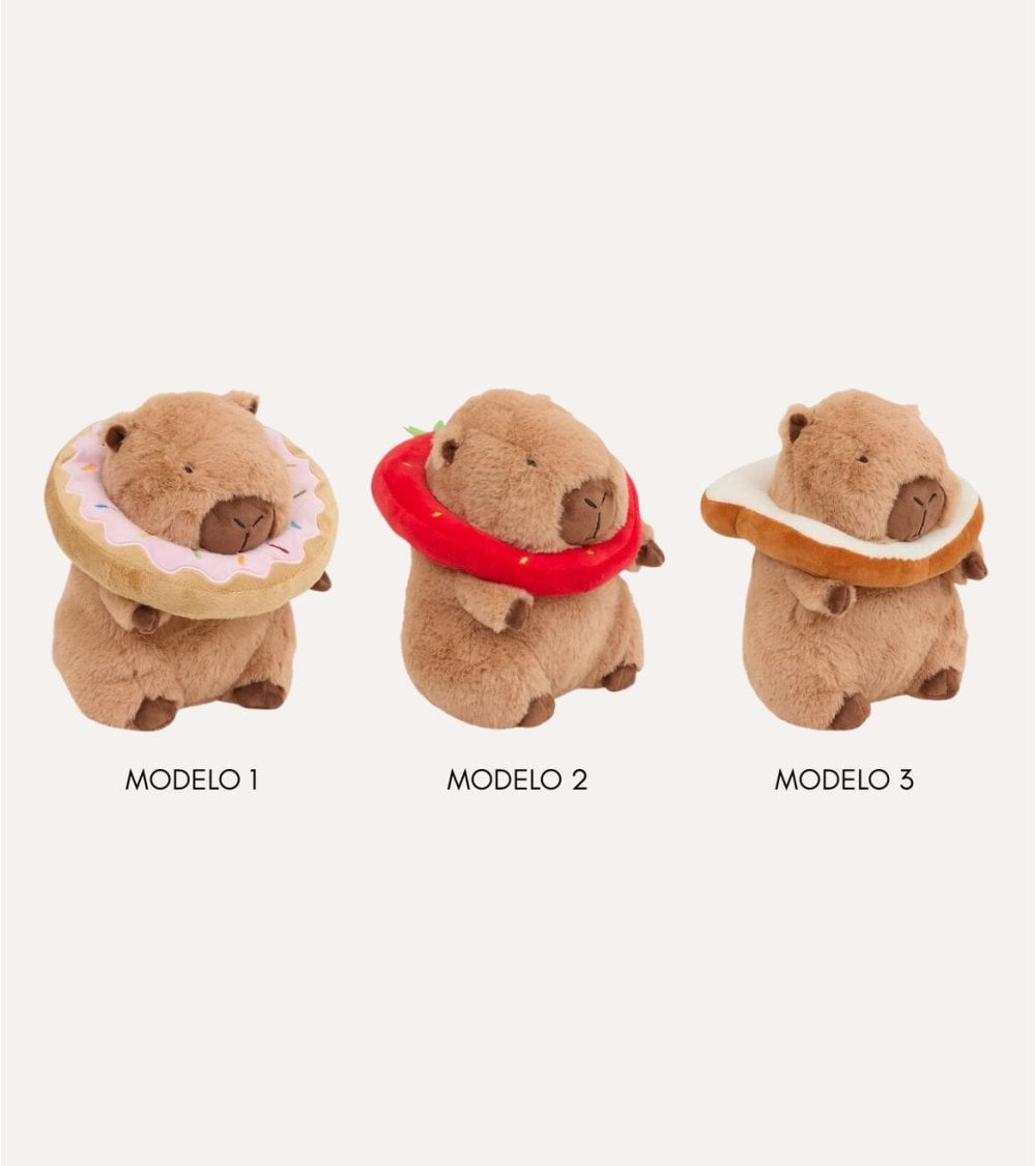 - Diseño: Capibara con expresión amigable bordada, cuerpo redondeado y extremidades cortas para mayor ternura.