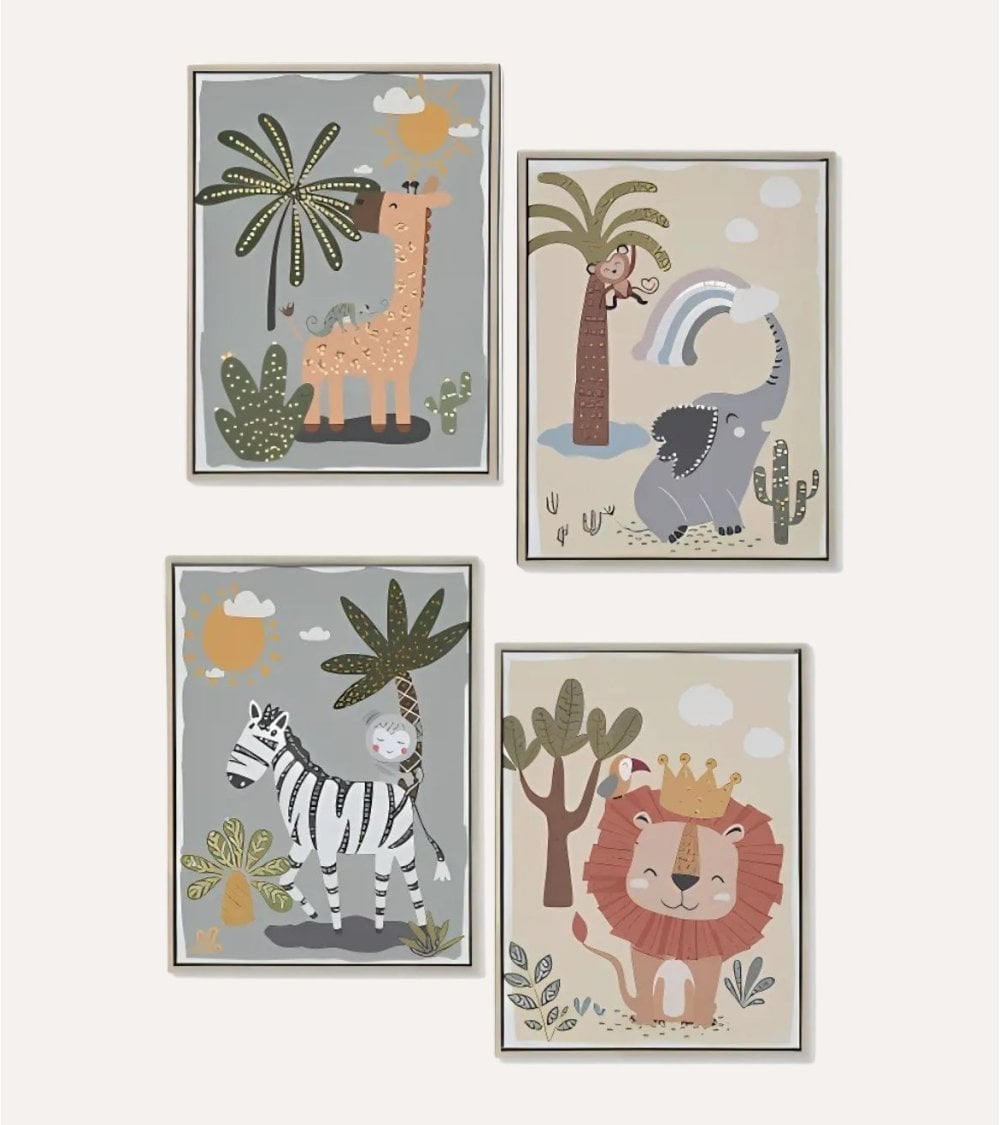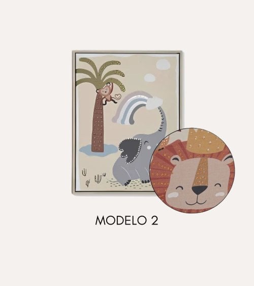 - Lienzo de animales, que aporta un toque de naturaleza y aventura a la habitación.