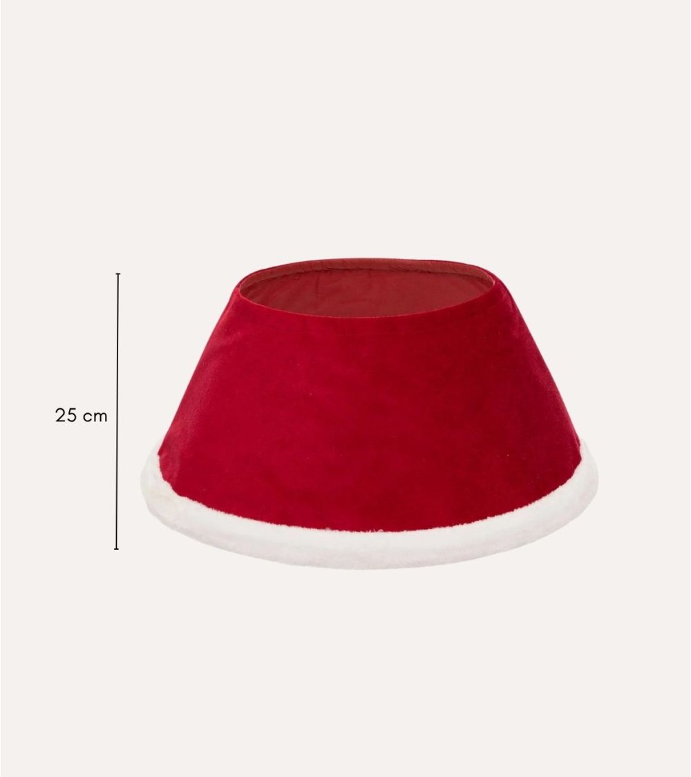 Esta base para árbol navideño, fabricada con poliéster y cartón resistente, es ligera pero robusta, ideal para sostener árboles de tamaño pequeño a mediano. Su diseño único, inspirado en el gorro rojo de Papá Noel, aporta un aire clásico y alegre a las fiestas decembrinas. Con una textura suave y acabados cuidadosos, esta base es práctica y decorativa, perfecta para cualquier estilo navideño. Es versátil, apta para uso interior y eventos especiales, destacando la magia de la Navidad. Tamaño: 56 x 32 x 25 cm.