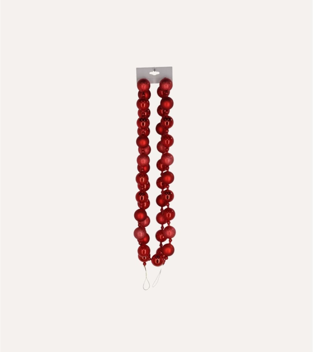 La Guirnalda de Bolas Anne está diseñada con dos hileras paralelas de bolas decorativas que alternan acabados mate, brillantes y con detalles glitter, aportando profundidad visual y un brillo sutil que captura la luz ambiental. Su tamaño compacto permite múltiples usos: desde adornar el árbol de Navidad hasta decorar escaleras, chimeneas o centros de mesa.