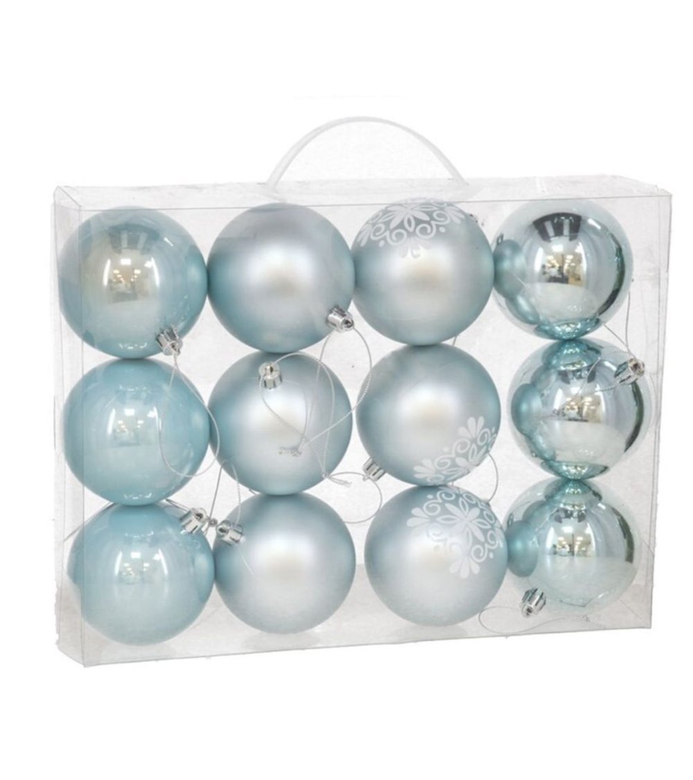 El Set de 12 Bolas Trim Elegantes es un conjunto de bolas metalizadas brillantes y mates, 3 de ellas con un patrón blanco elegante, como de realeza. Ideales para árboles coloridos. Dos medidas disponibles: set de 12 bolas: 6 cm. set de 24 bolas: 8 cm. Disponible en azul, verde o rosa pastel. Este set es perfecto para darle un toque de elegancia y sofisticación a tu árbol de Navidad. Cada bola ha sido cuidadosamente diseñada para capturar la luz y reflejarla, creando un efecto deslumbrante que seguramente impresionará a tus invitados.