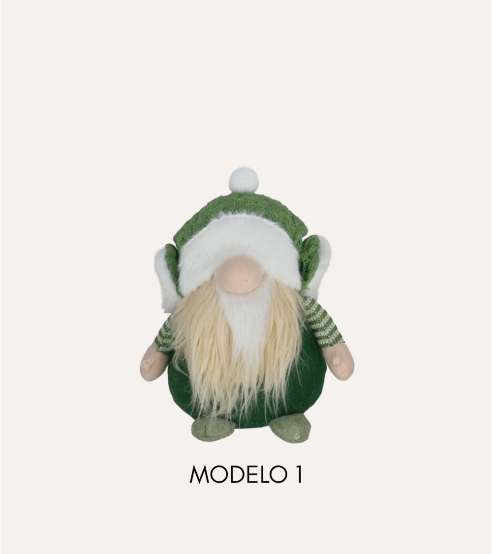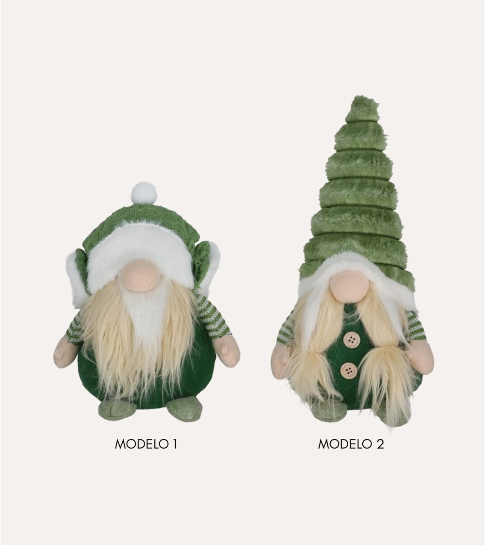 Fabricado con poliéster de alta calidad, este gnomo ofrece una textura suave y duradera, ideal para decorar cualquier espacio del hogar o incluso como un regalo especial para los amantes de la Navidad. Su color oliva aporta frescura y elegancia, haciendo que destaque en cualquier ambiente sin perder ese aire acogedor tan característico de las fiestas.