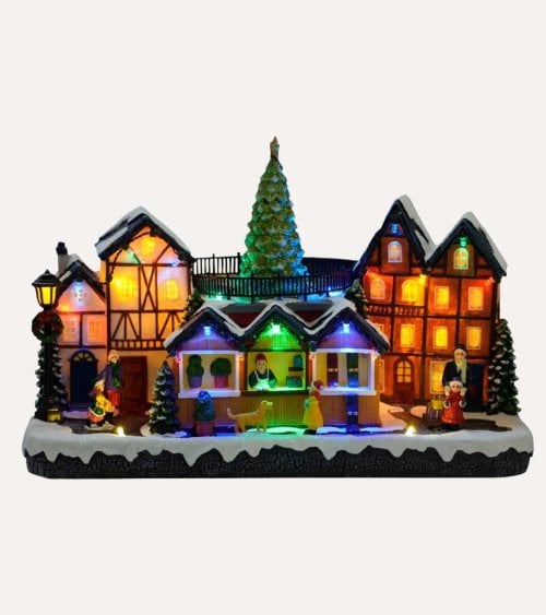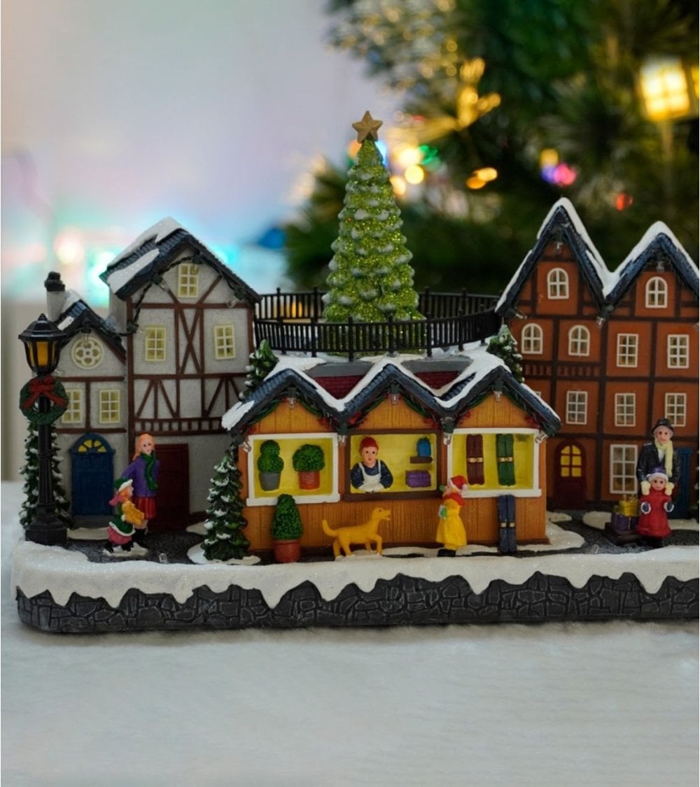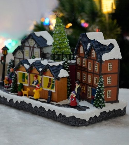 Escena Navideña de Pueblo con Luz, Movimiento y Música