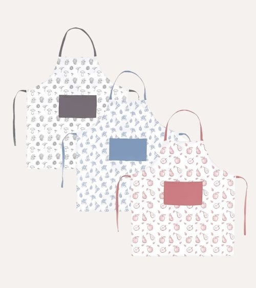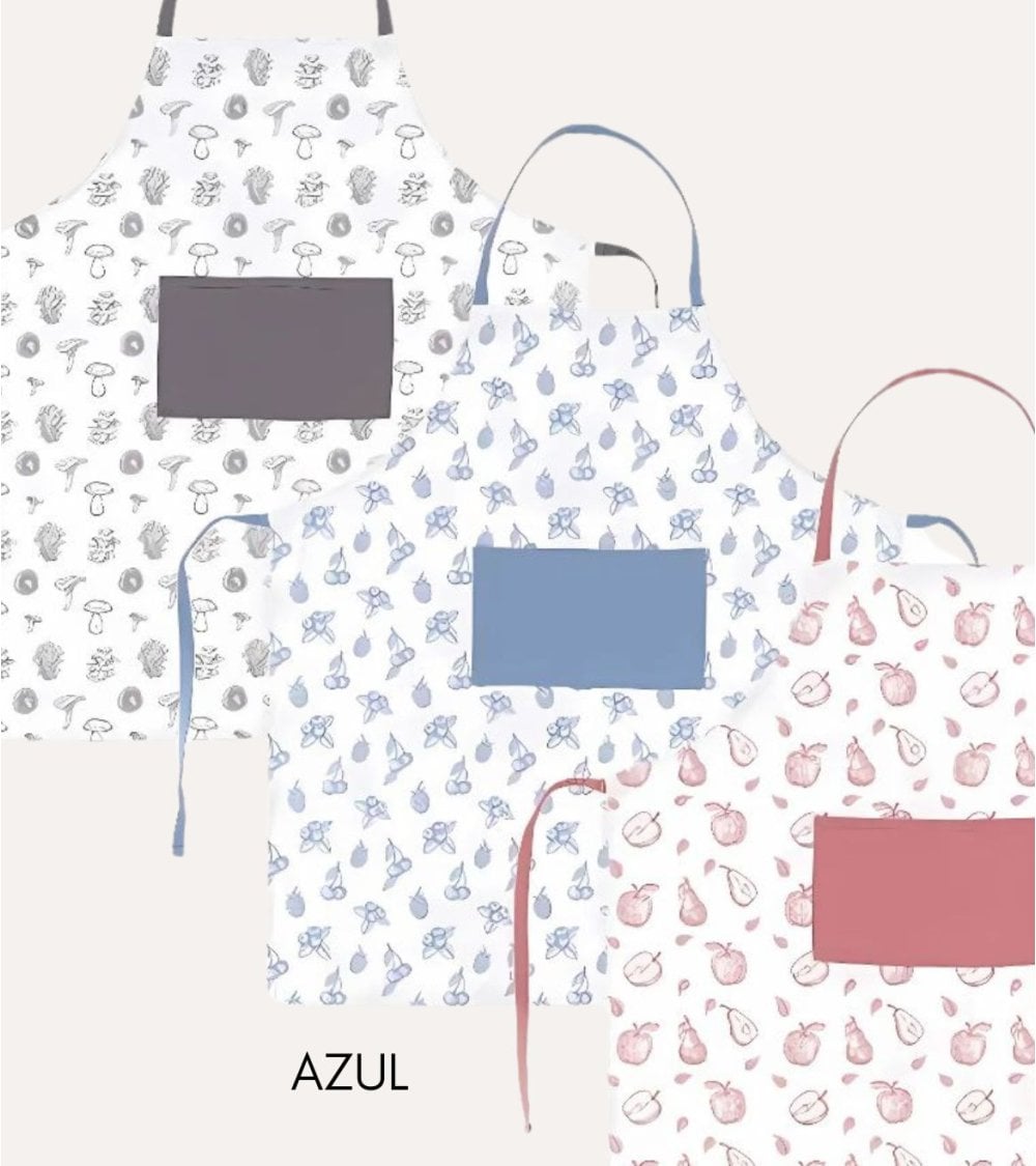 Este delantal de cocina con bolsillo frontal está disponible en tres modelos, cada uno con patrones diferentes de ingredientes de cocina. Sus medidas son 35 x 23.5 x 25 cm, lo que lo hace perfecto para cualquier adulto. Su talla universal y su diseño práctico y atractivo lo convierten en el complemento ideal para cualquier amante de la cocina.