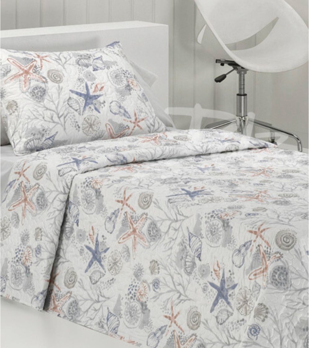 La Colcha Bouti Océano Cosida con 2 Fundas es la pieza perfecta para añadir un toque de frescura y estilo a tu dormitorio. Inspirada en el encanto del océano, esta colcha bouti presenta un hermoso estampado de elementos marinos, como estrellas de mar y conchas, que evocan tranquilidad y serenidad.