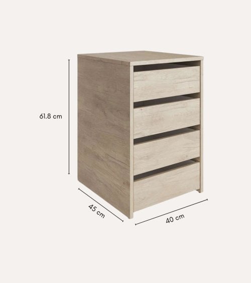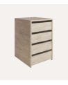 Este mueble destaca por su estructura compacta y moderna, diseñada para optimizar espacios sin sacrificar estilo. Disponible en dos colores sofisticados: Blanco y Roble, la cajonera se integra fácilmente en cualquier decoración gracias a su acabado en melamina que imita la textura natural de la madera, aportando calidez y elegancia.