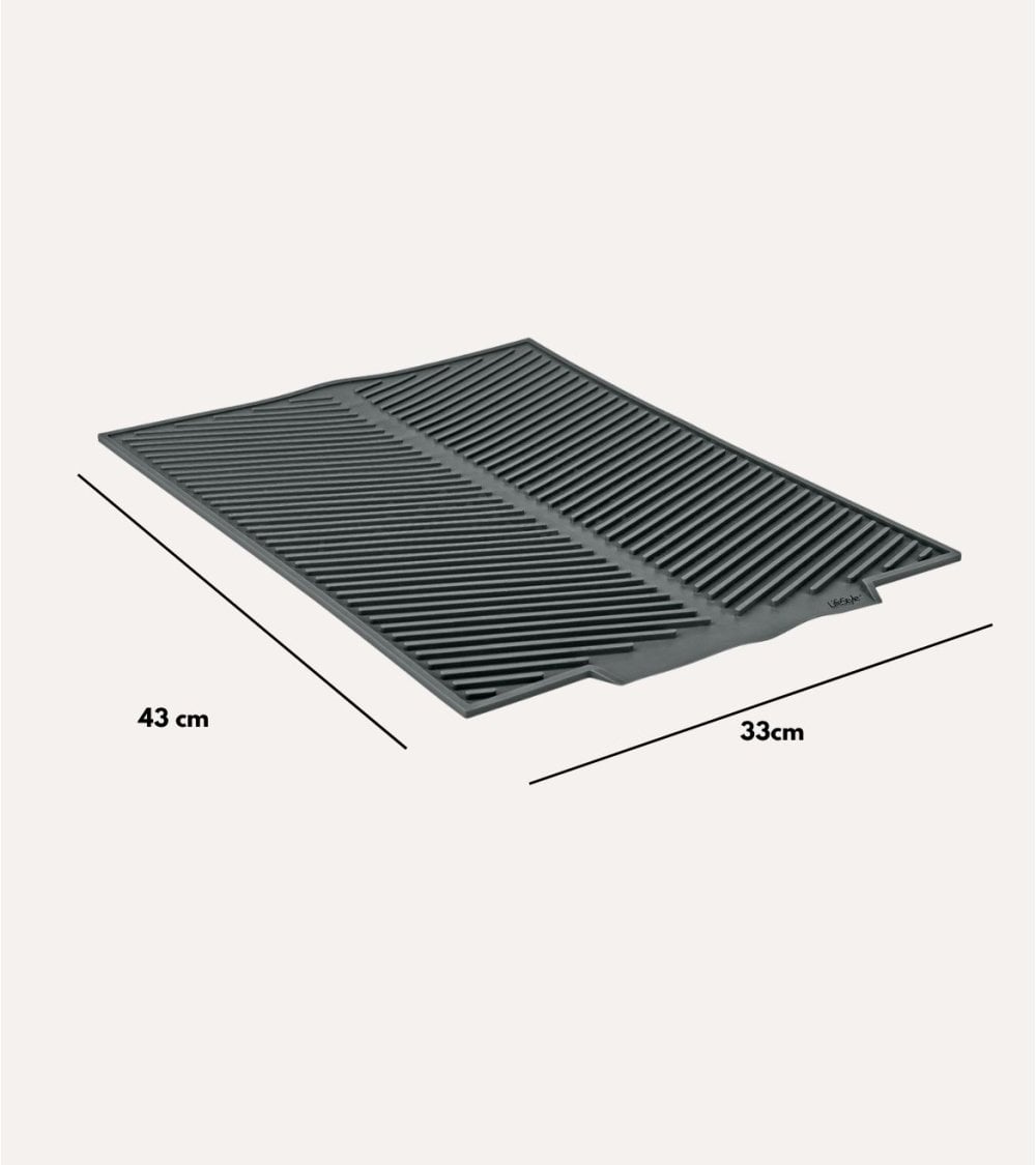 Fabricada en silicona flexible, esta alfombrilla destaca por su resistencia al calor y a la humedad, lo que garantiza una larga vida útil incluso con un uso diario intensivo. Su superficie cuenta con un diseño especial de ranuras paralelas y canales elevados, que facilitan el drenaje del agua, evitando la acumulación y promoviendo un secado rápido y eficiente.