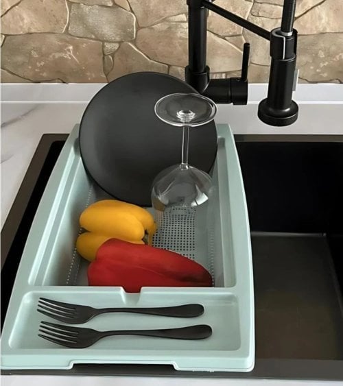 - Se encaja en los bordes del fregadero para un escurrido eficiente.
